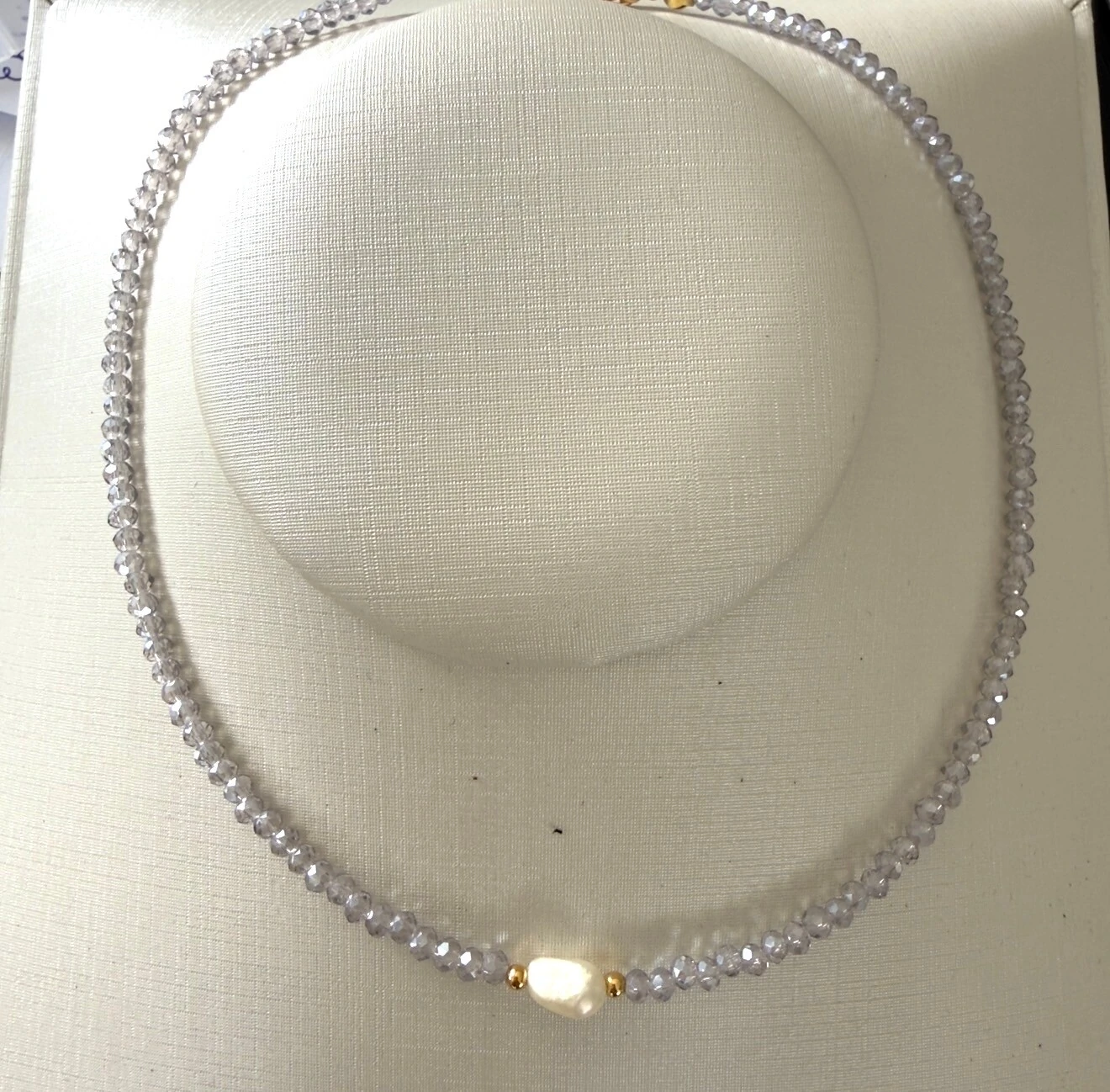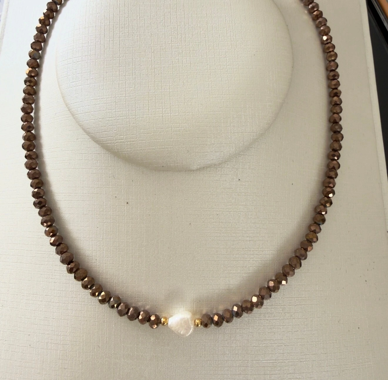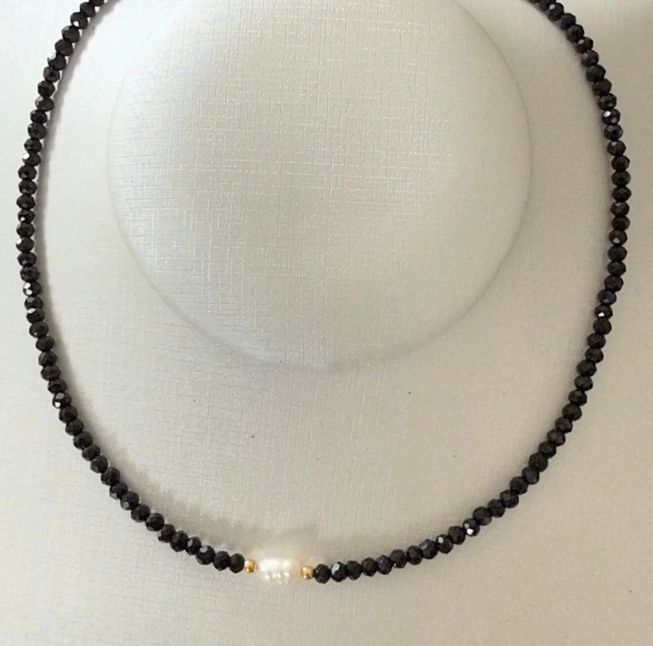 Colar de Pérolas Naturais com Bolinhas Douradas