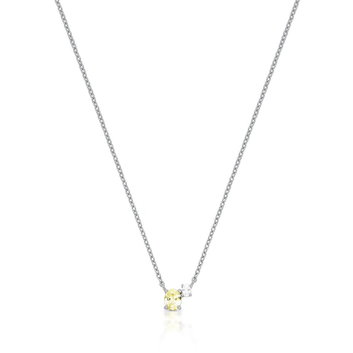 Colar Citrino Oval e Ponto de Luz de Zircônia em Prata 925