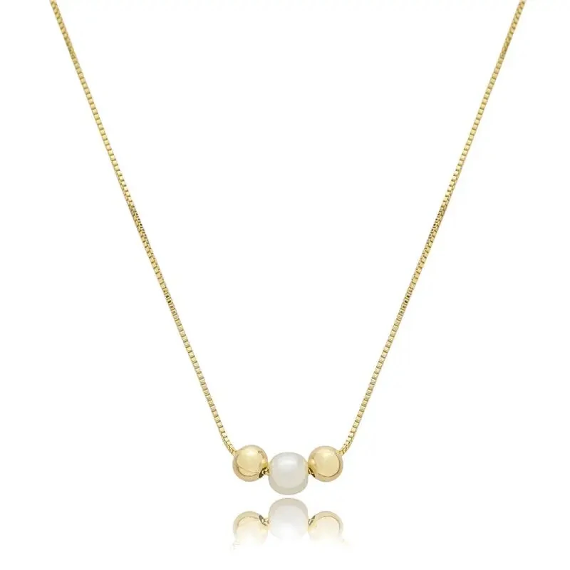 Colar com 2 Bolinhas Douradas e 1 Perolinha em Dourado