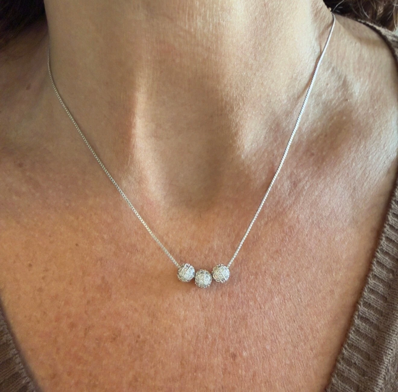 Colar com 3 Bolinhas Cravejadas com Zircônias em Ródio