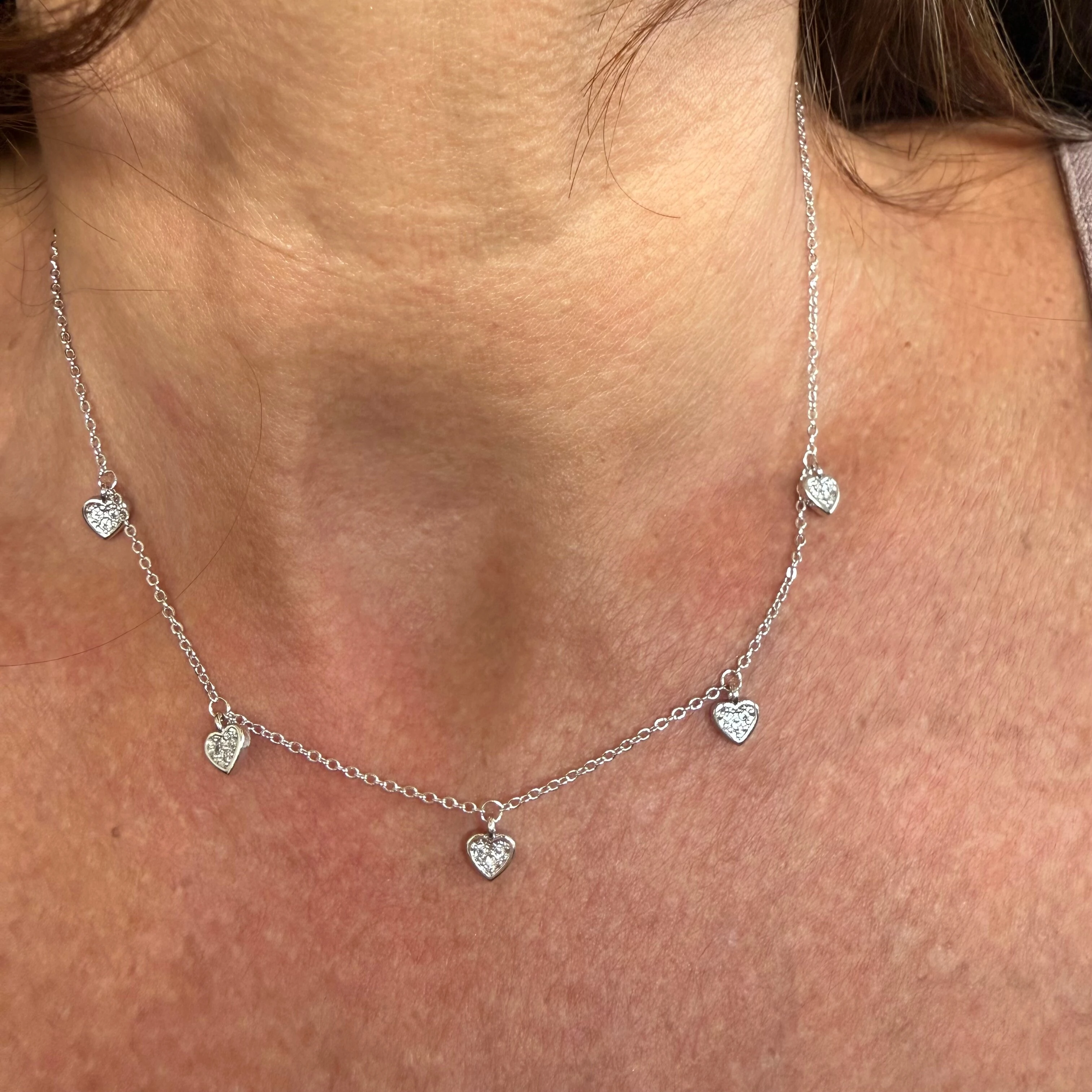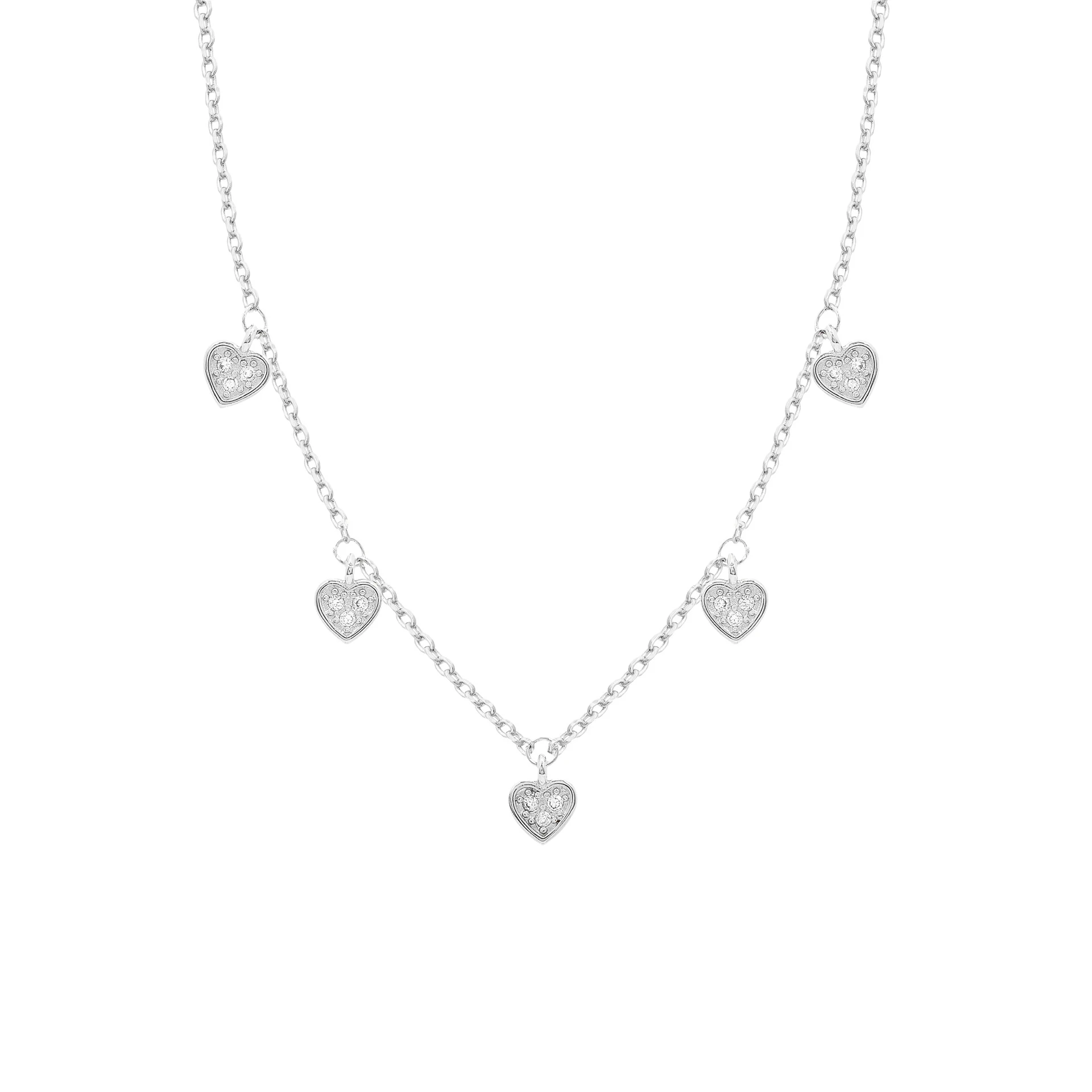 Colar com Corações Pendurados em Rodio