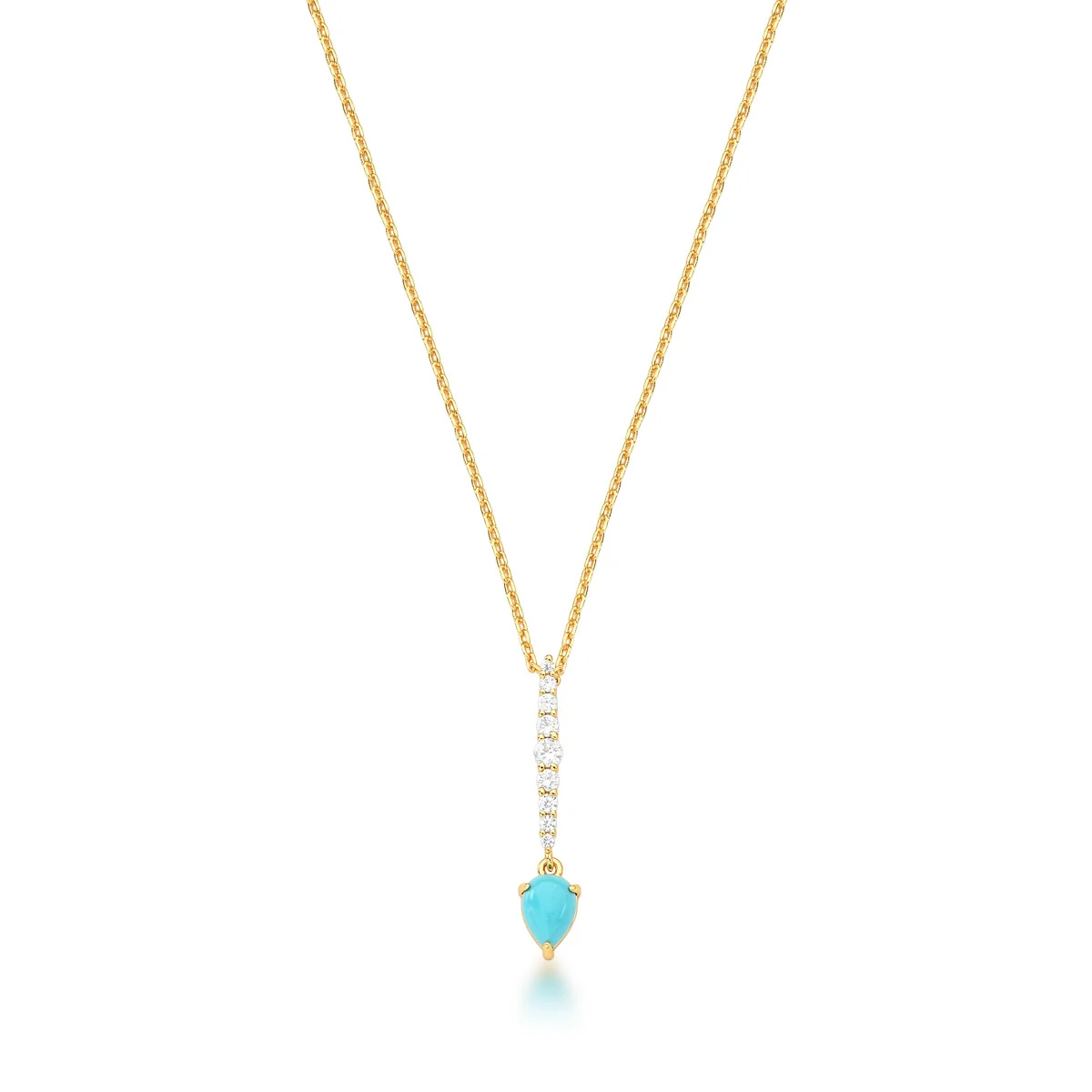 Colar com Pingente Cravejado de Zircônias e Gota Turquesa em Ródio