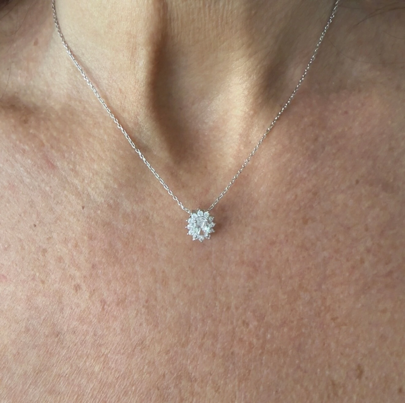 Colar com Pingente Oval Princesa com Zircônias em Ródio