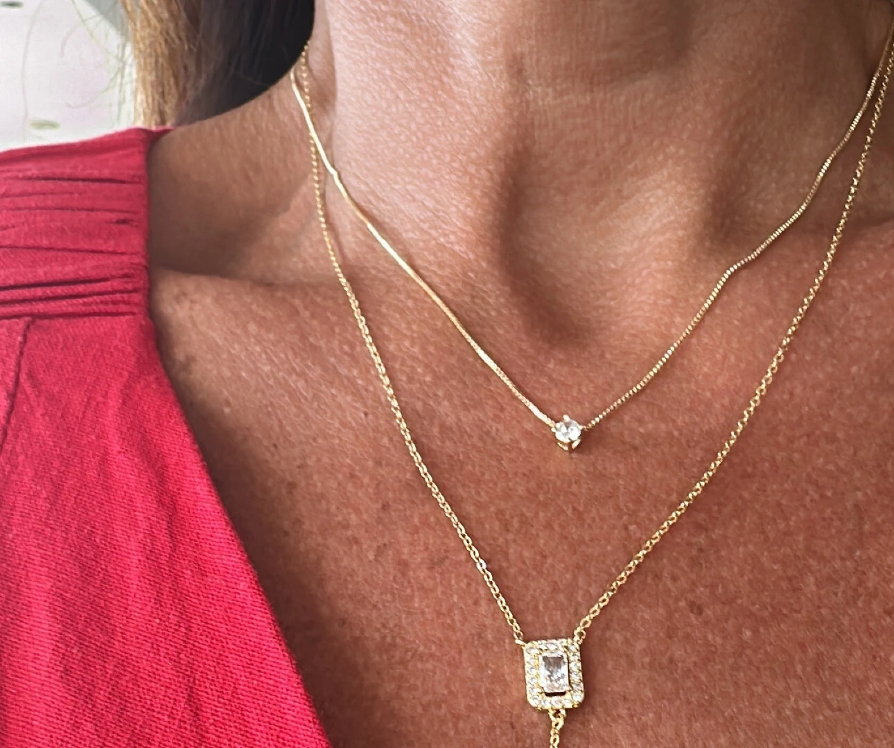 Colar com Ponto de Luz de Zircônia Quadrada em Dourado