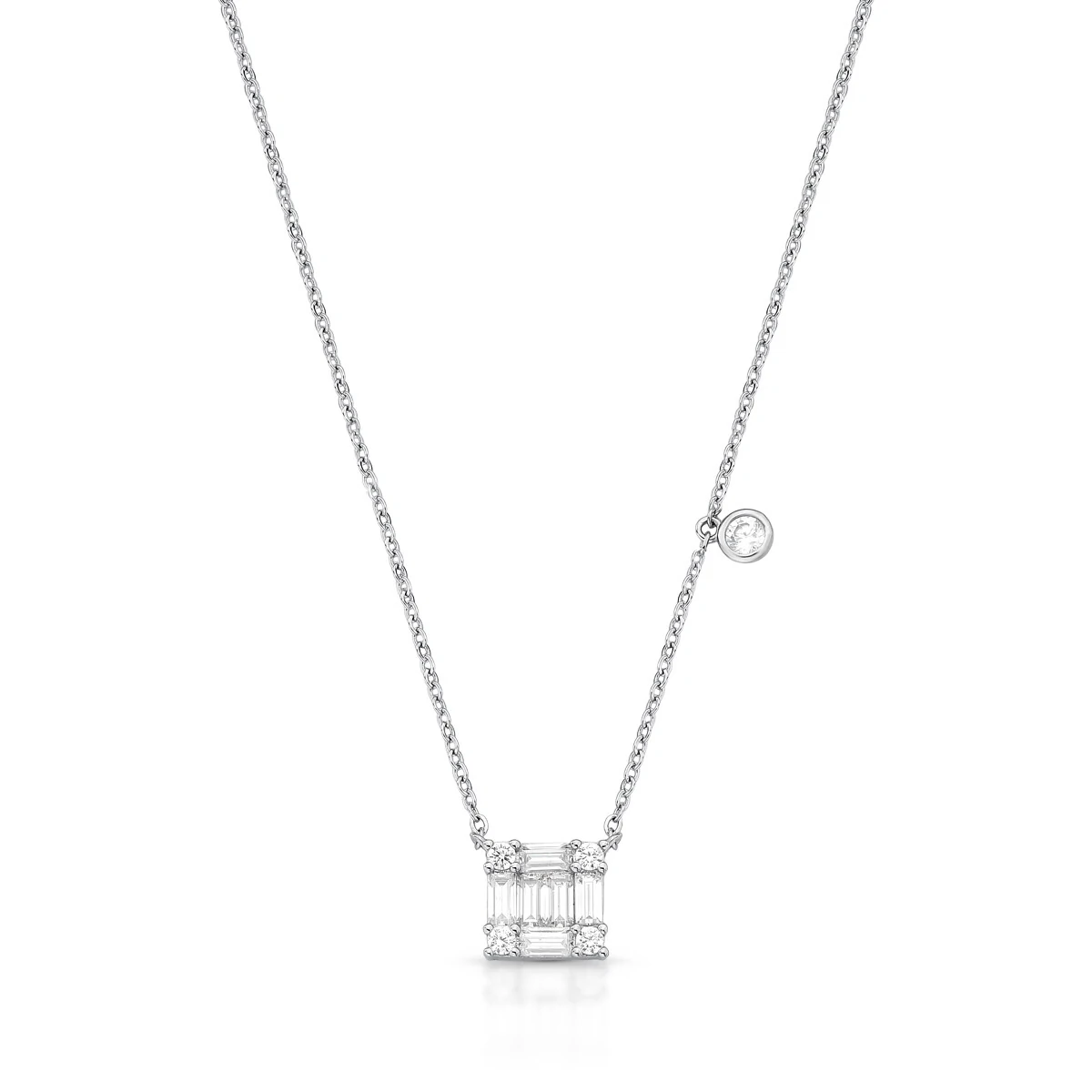Colar com Quadradinho de Zircônias Baguetes em Ródio