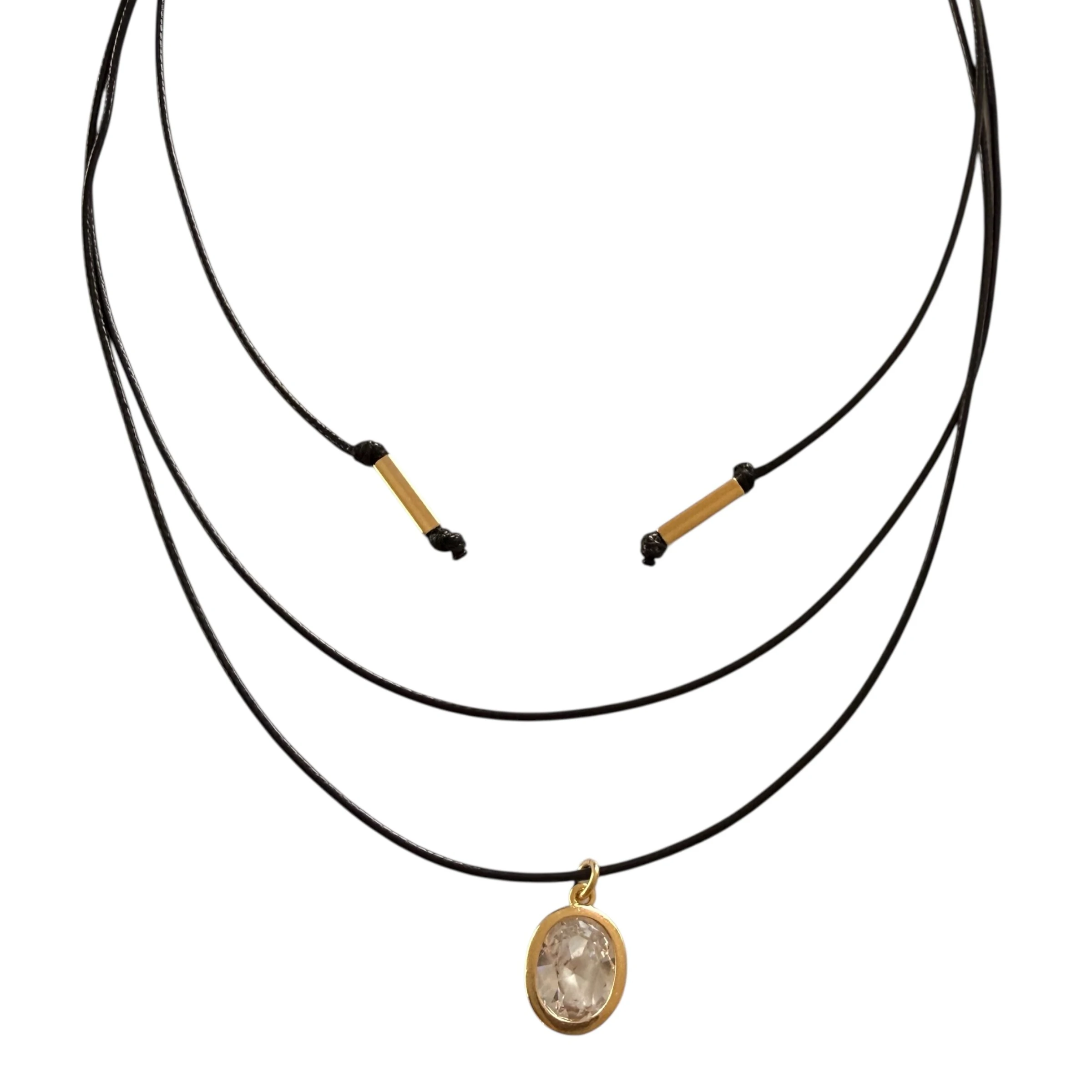 Colar Citrino Oval e Ponto de Luz de Zircônia em Prata 925