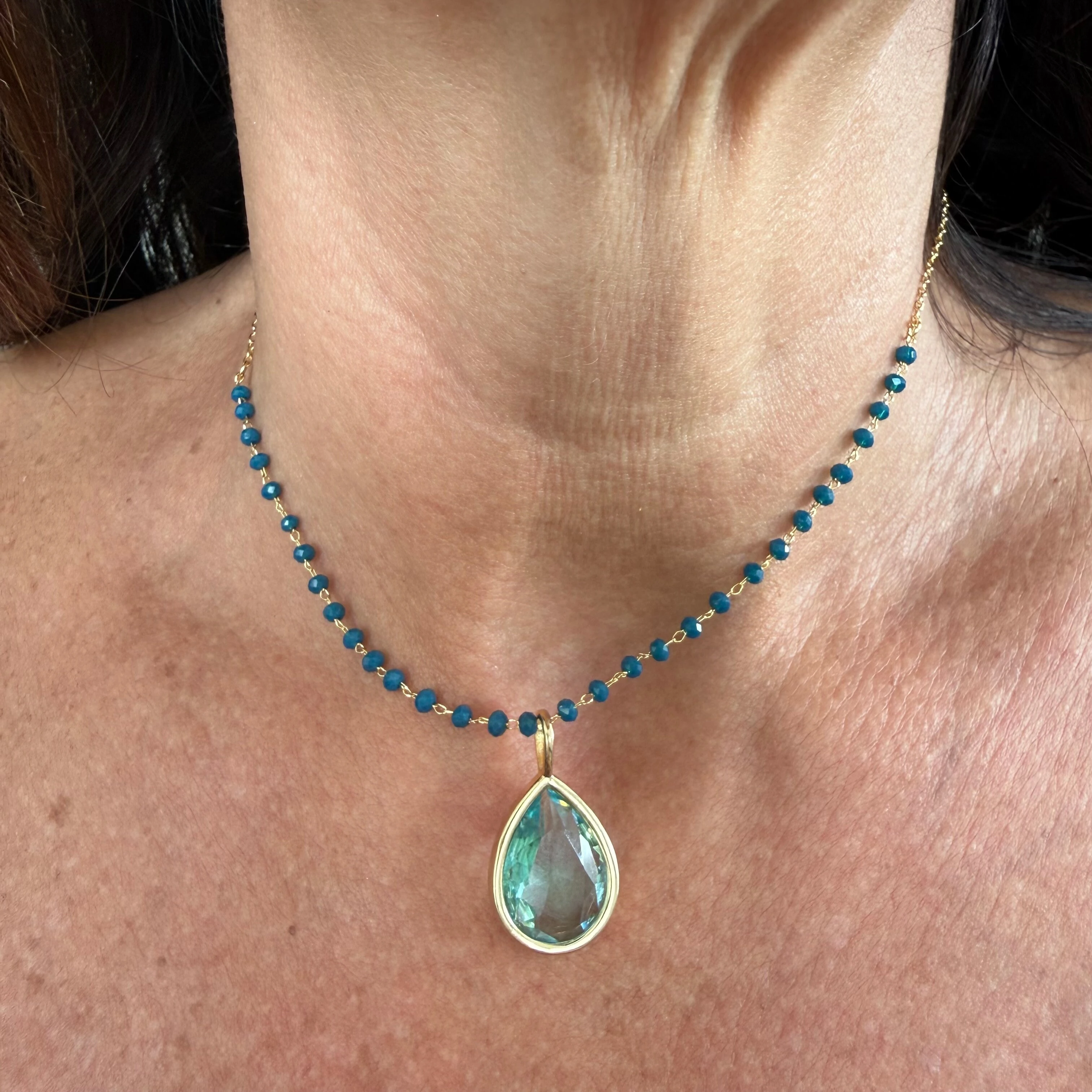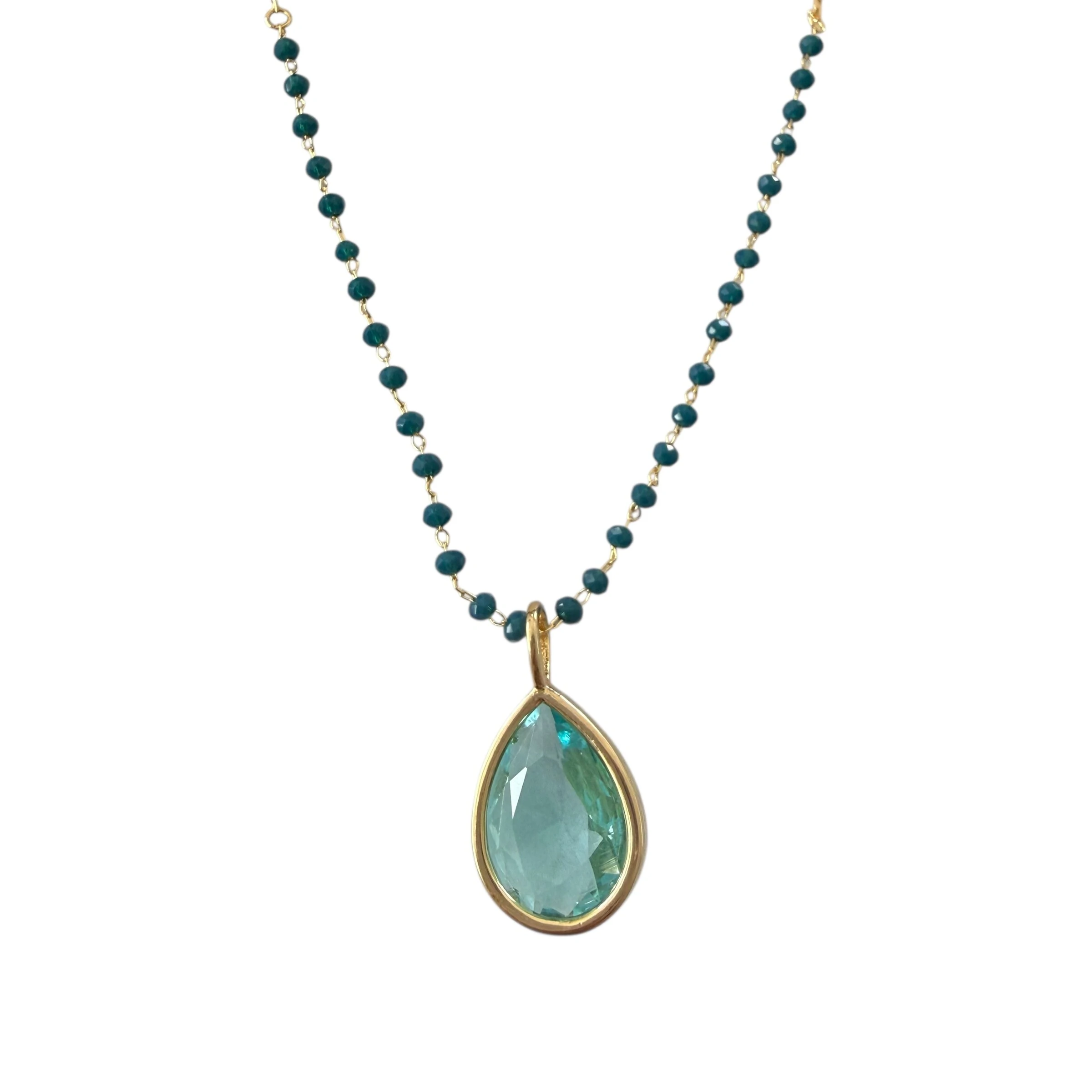 Colar Turquesa com Pingentes em Dourado