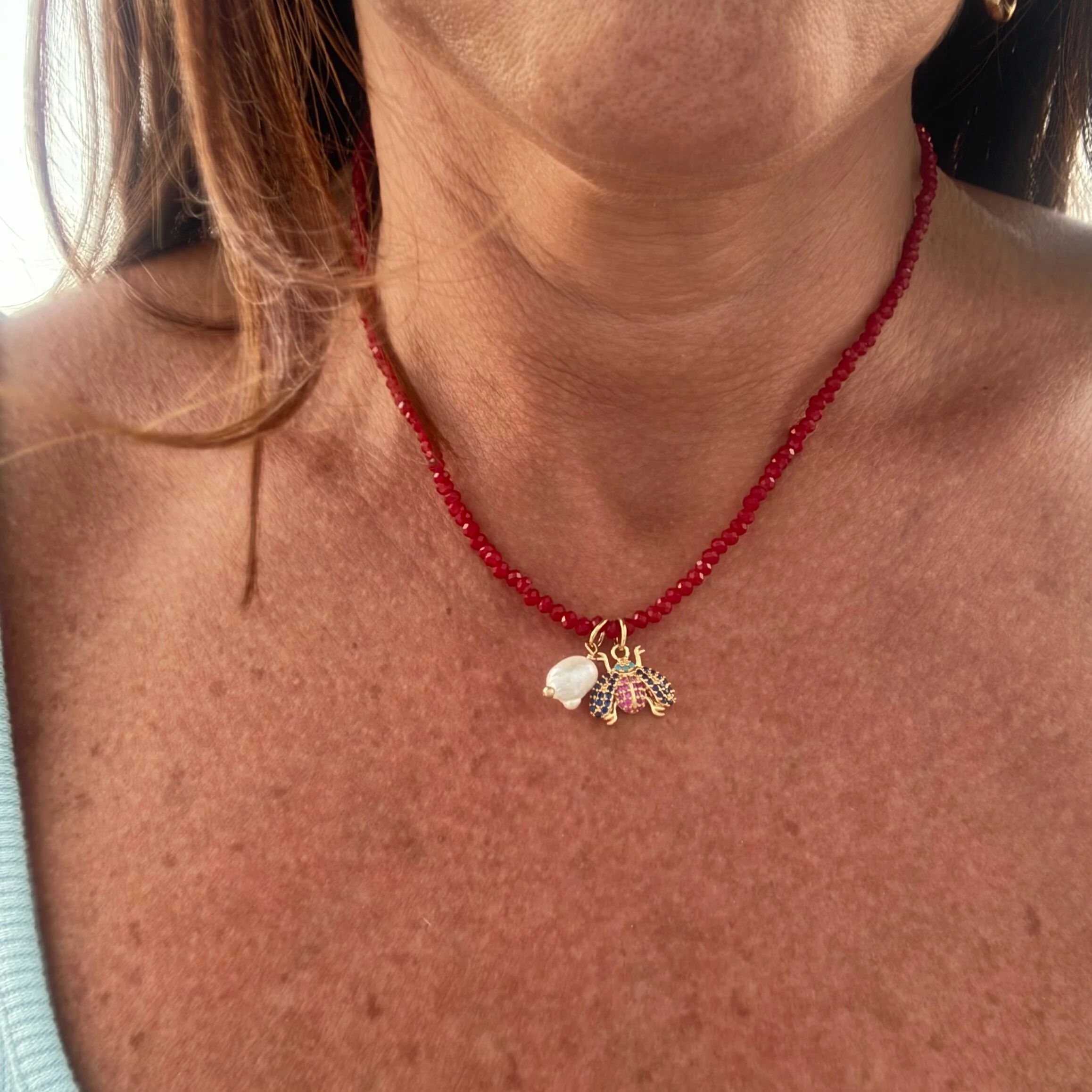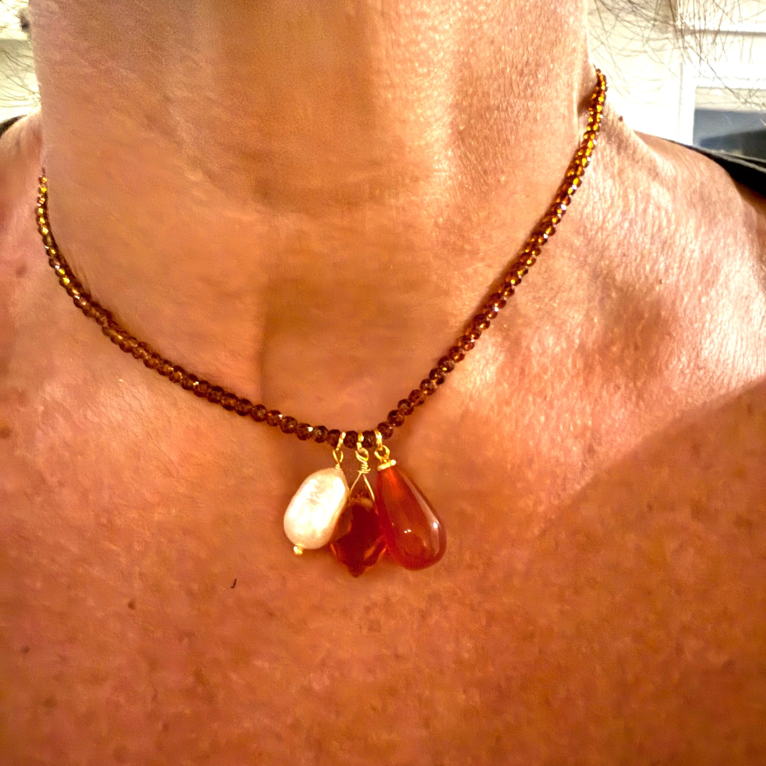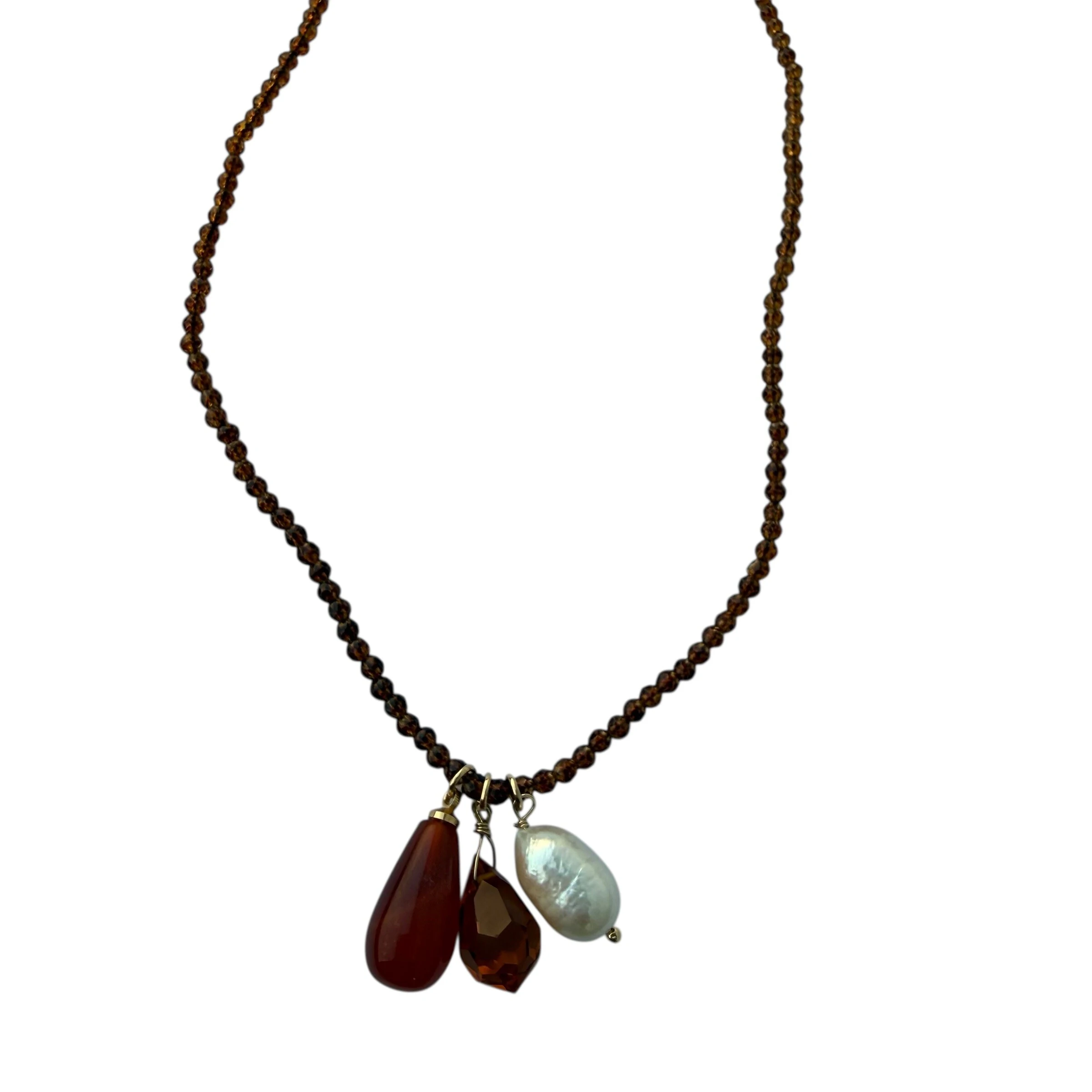 Colar Cristal com Pingentes de Pérolas e Dourado