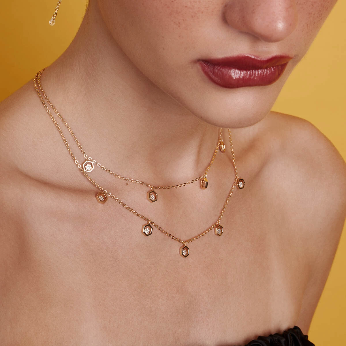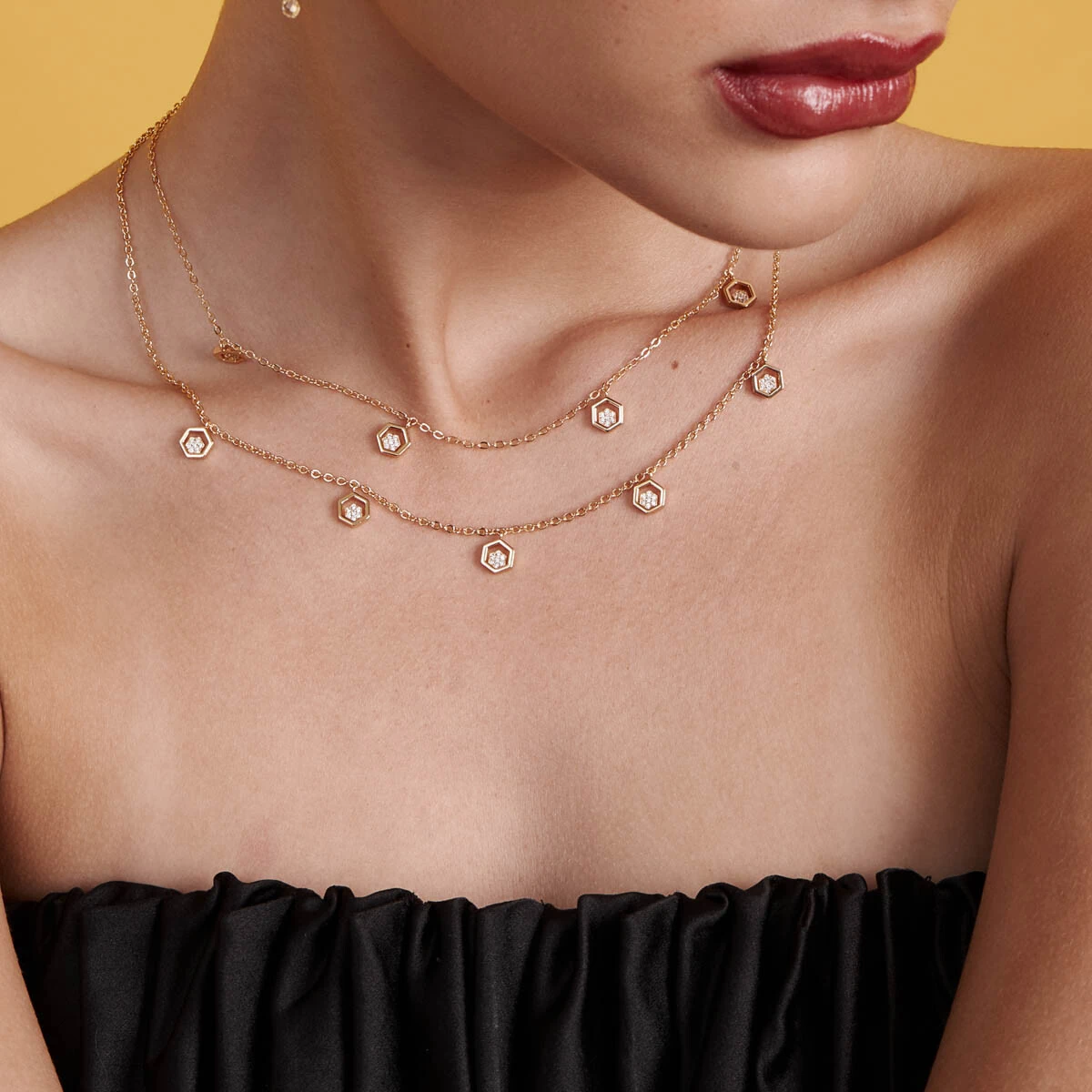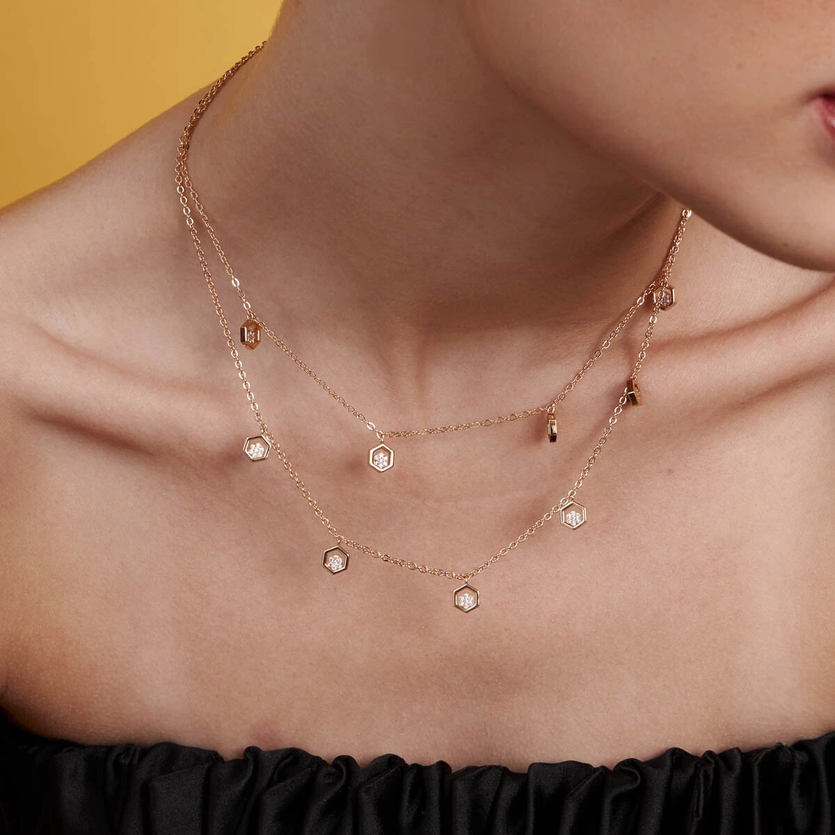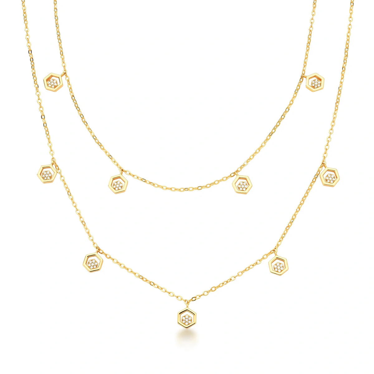 Colar Duplo Colmeia com Zircônias em Prata 925