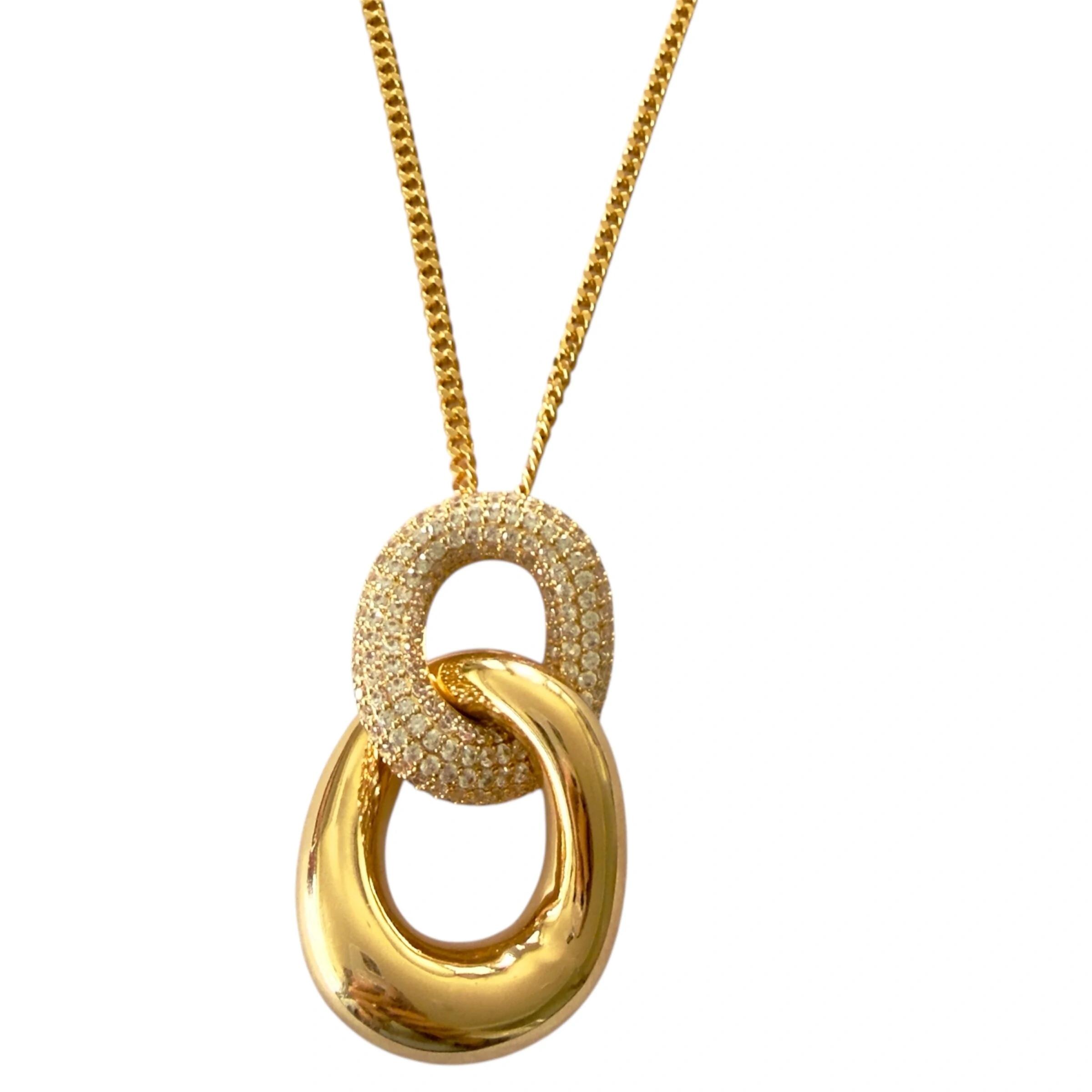 Colar Elo Liso e Cravejado com Zircônias em Dourado