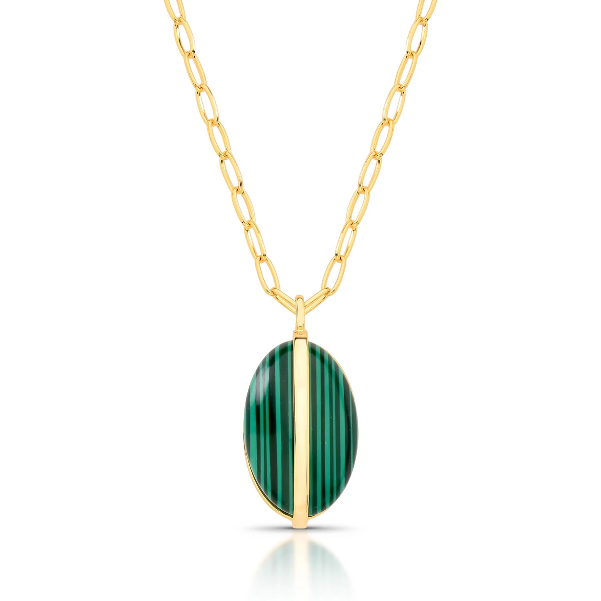 Colar Elos Cartier com Pingente Oval Malaquita em Dourado