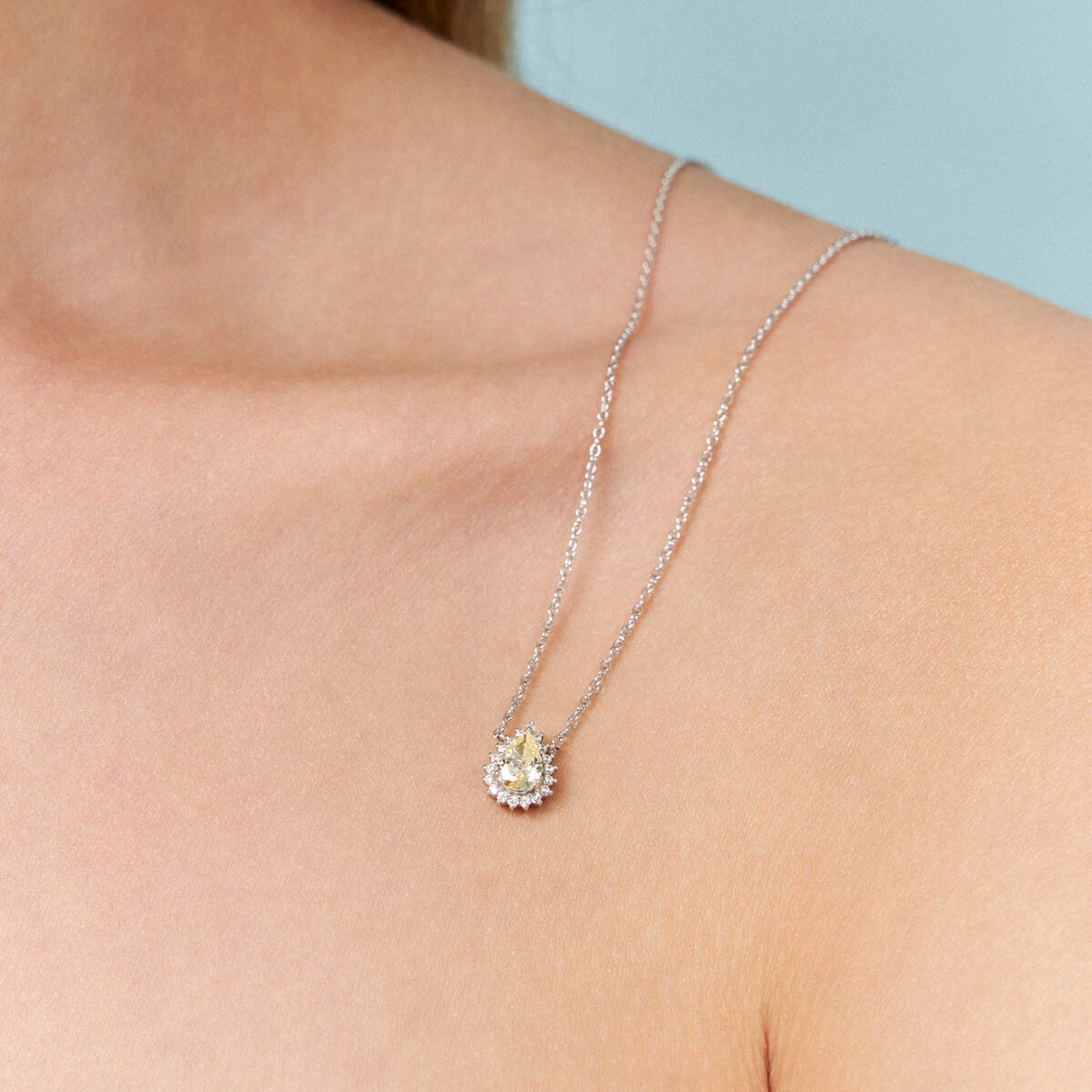Colar com Pingente Roda Baguetes de Zircônias em Ródio