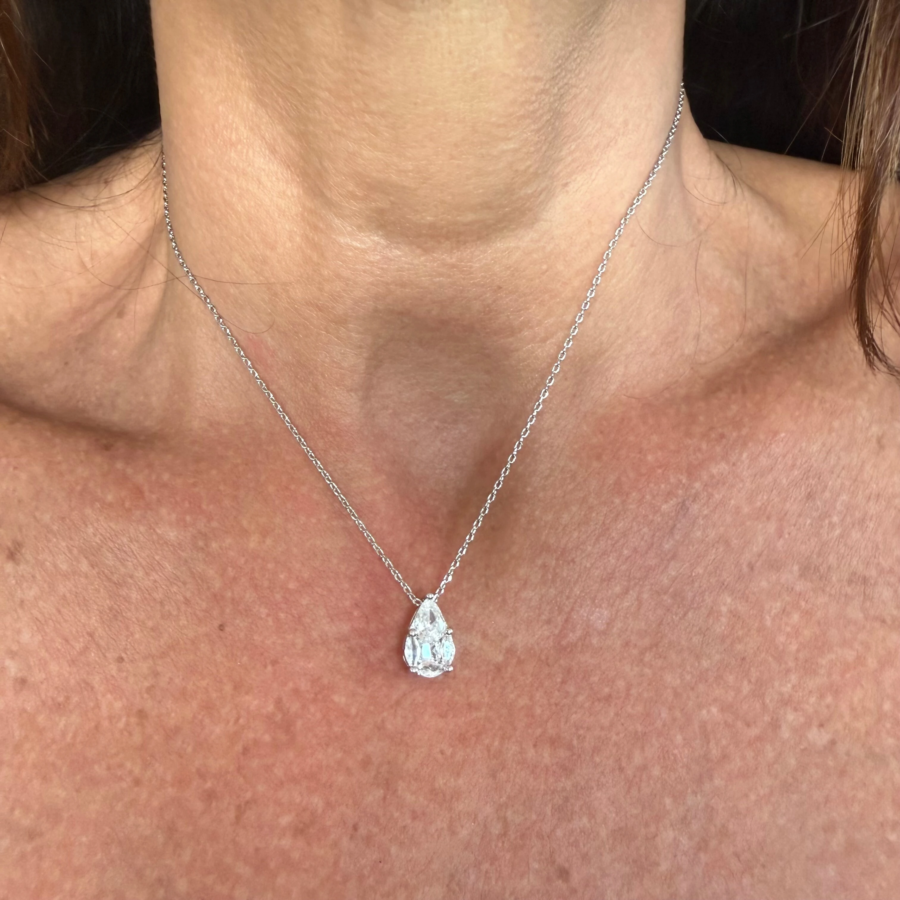 O colar em prata 925 apresenta um delicado pingente em formato de gota, com zircônia Illusion que potencializa o brilho e cria um efeito visual ainda mais sofisticado e impactante. Sua lapidação valoriza cada reflexo de luz, proporcionando um acabamento semelhante ao de uma joia de alto padrão.