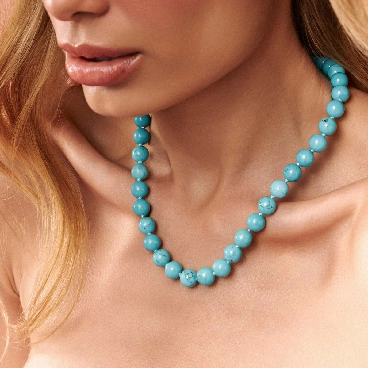 Colar Howlita Turquesa com Fecho Cravejado com Zircônias em Dourado