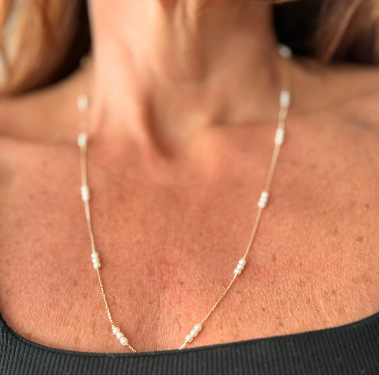 Colar Longo 3 Perolinhas Espaçadas em Dourado