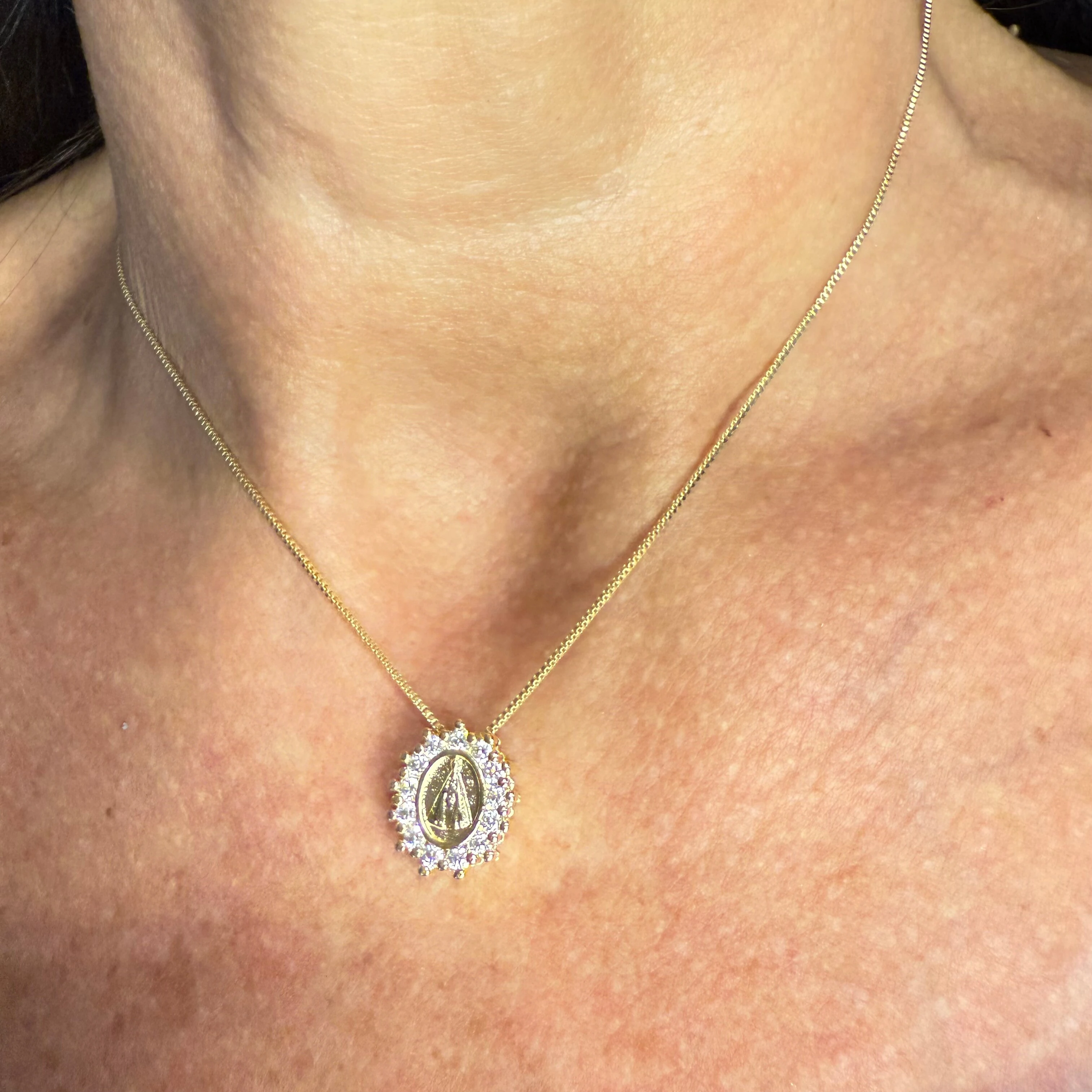 Colar N Sra Aparecida com Zircônias Laterais em Dourado