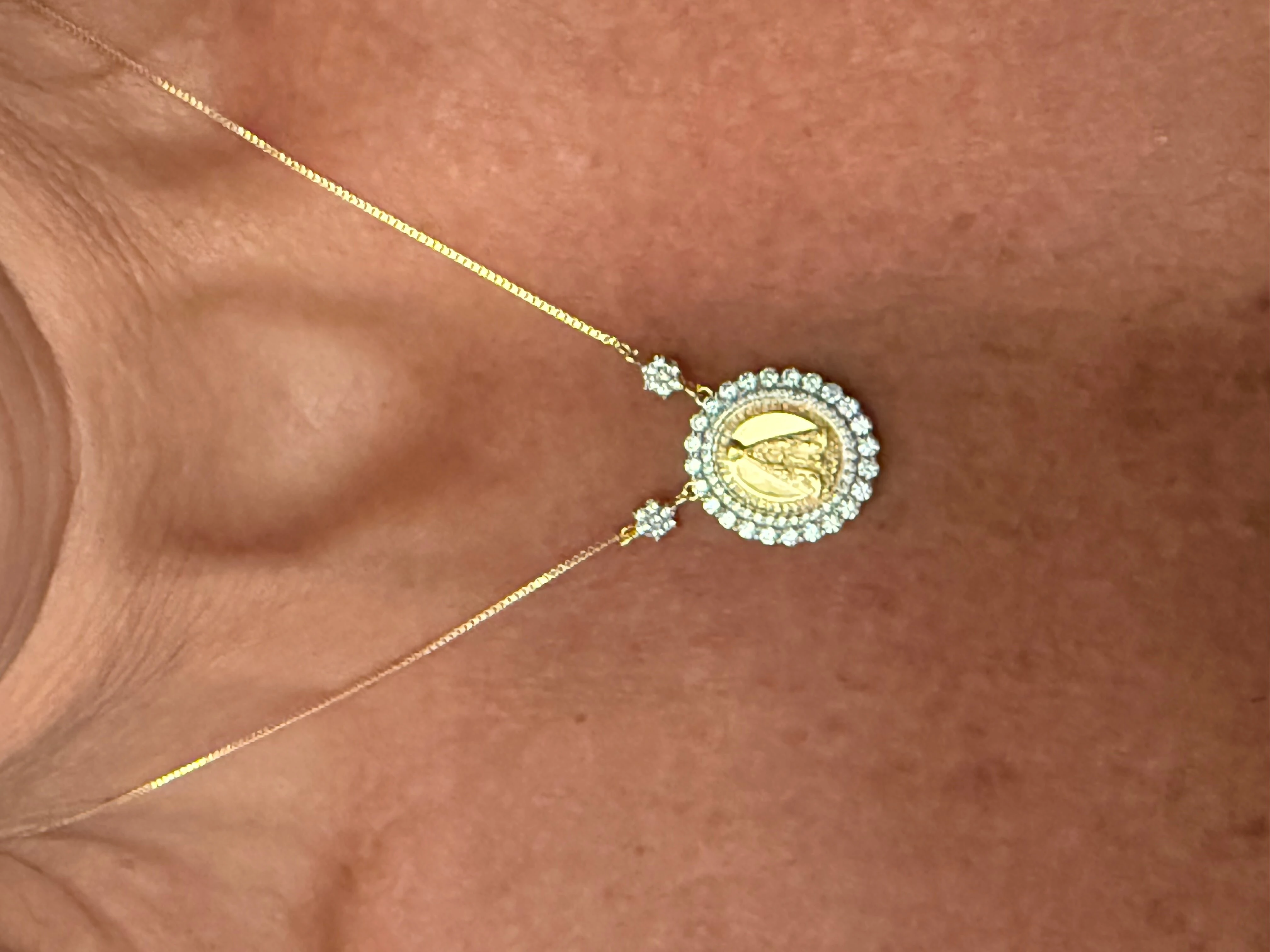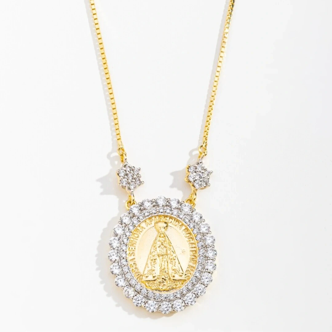Colar N Sra Aparecida Zircônias laterais com Banho de Ouro em Prata 925