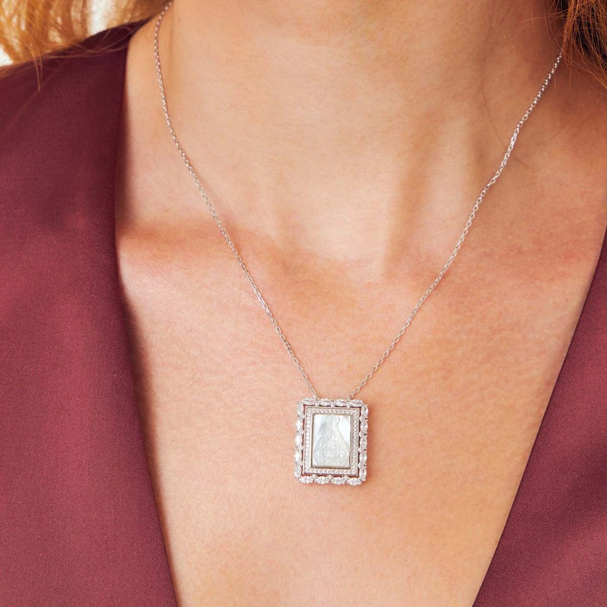 Colar Nossa Sra em Madrepérola com Zircônias em Prata 925