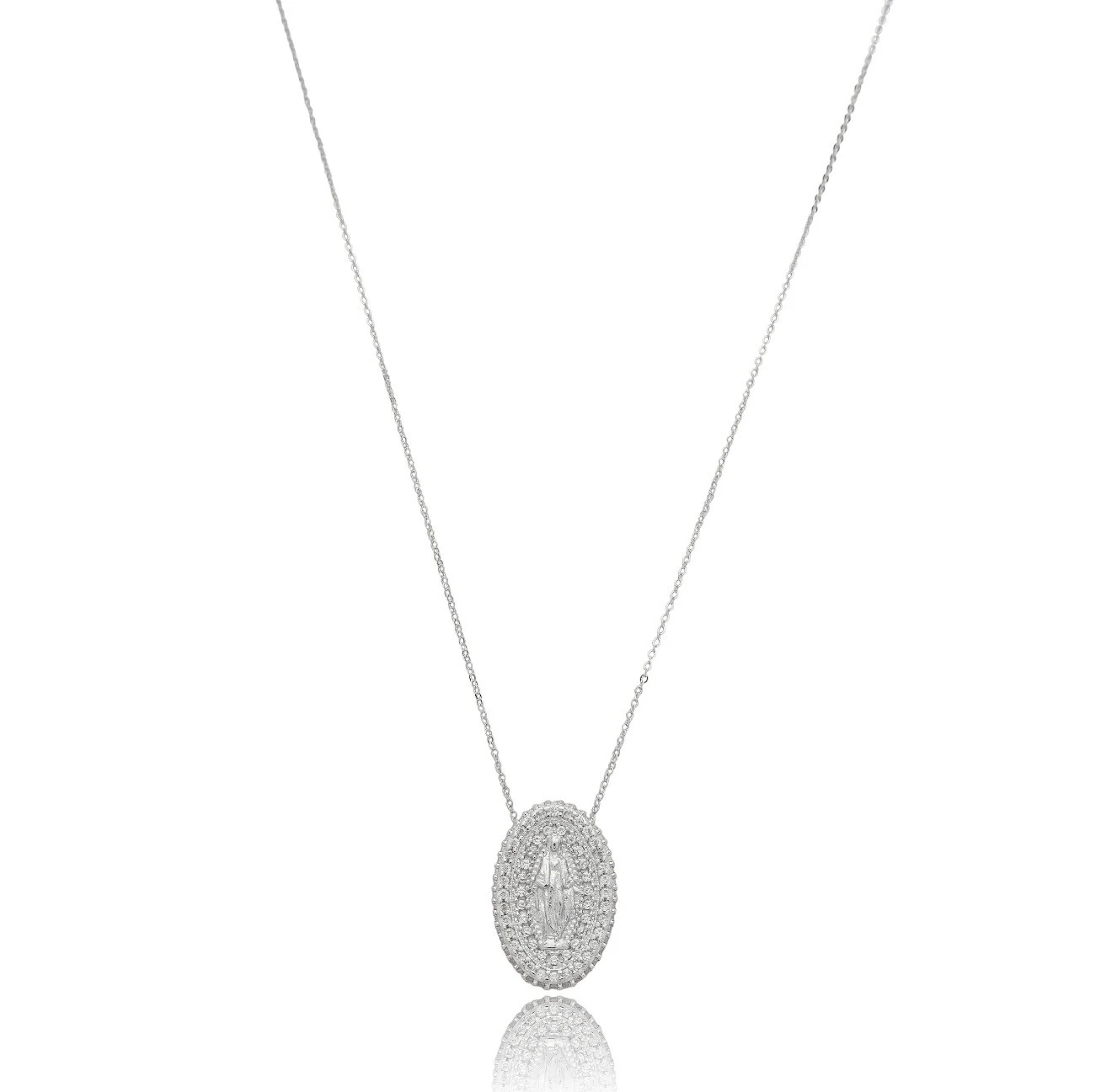 Colar Nossa Sra Oval com Zircônias em Ródio