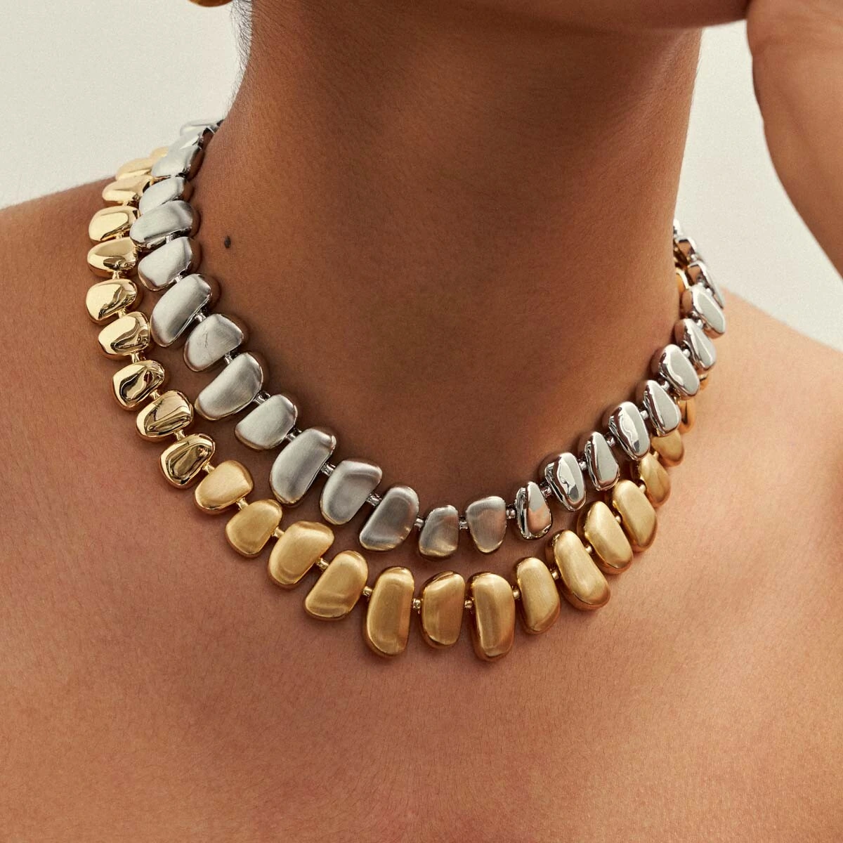Colar Peças Lisas e Foscas em Ródio