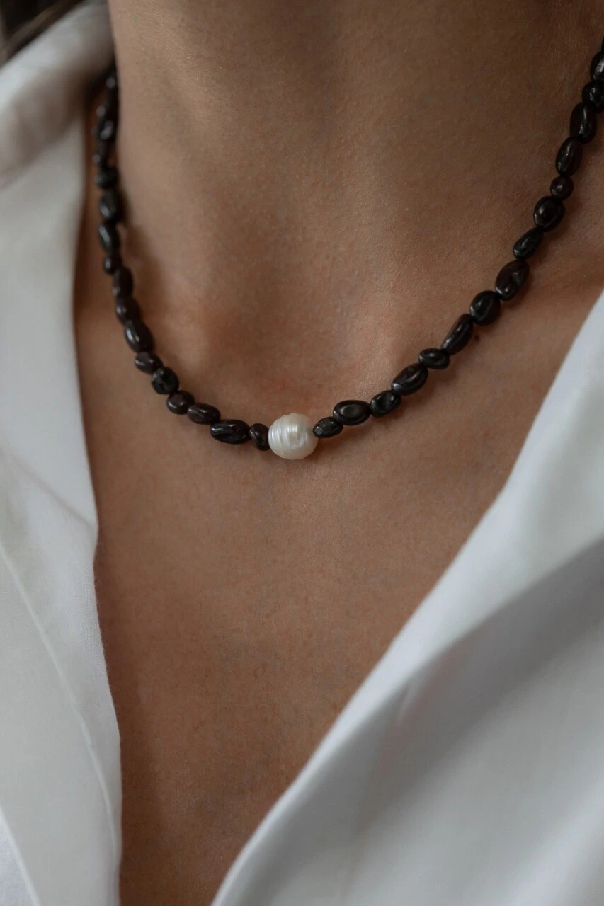 Colar Pedra Natural com Pérola de Água Doce em Ródio