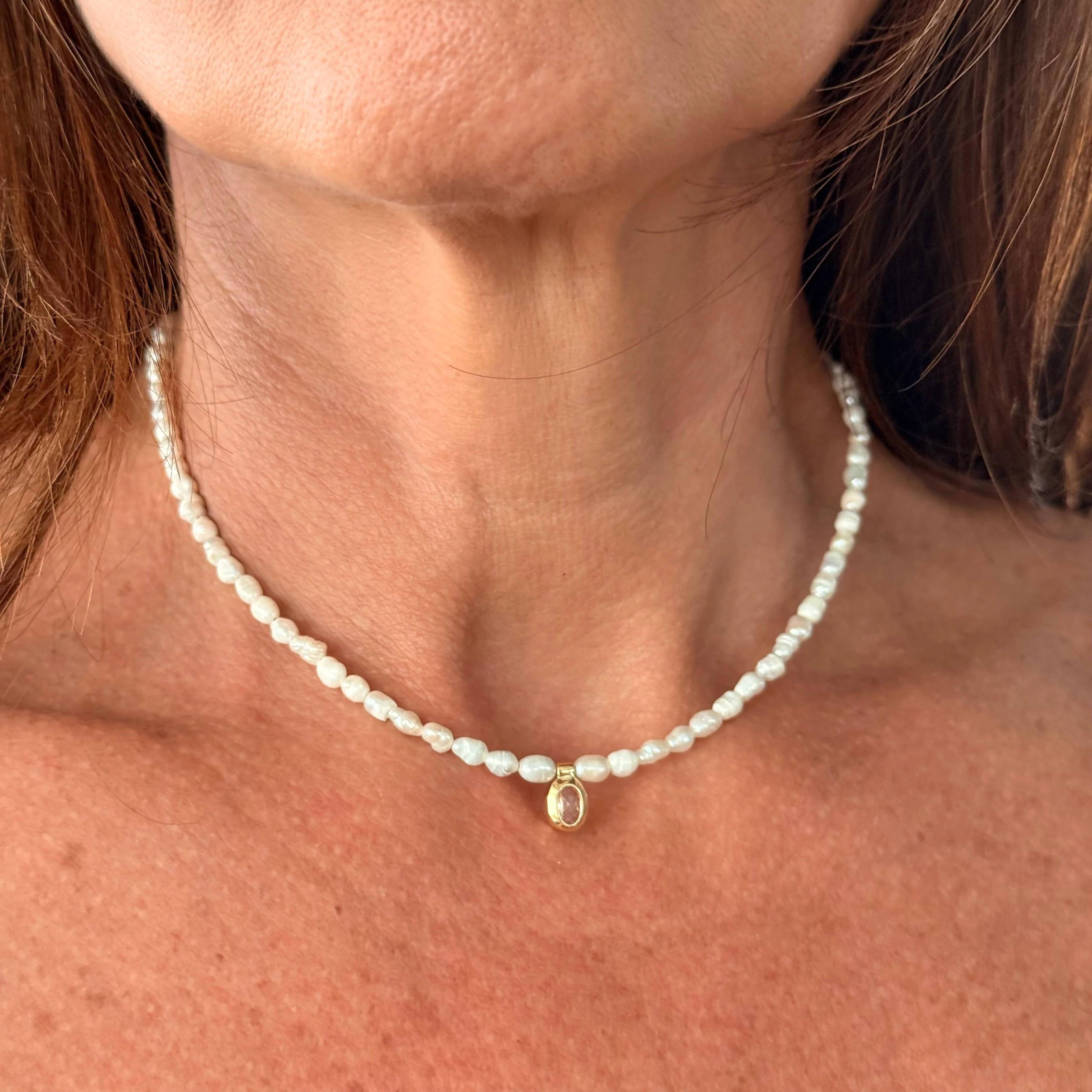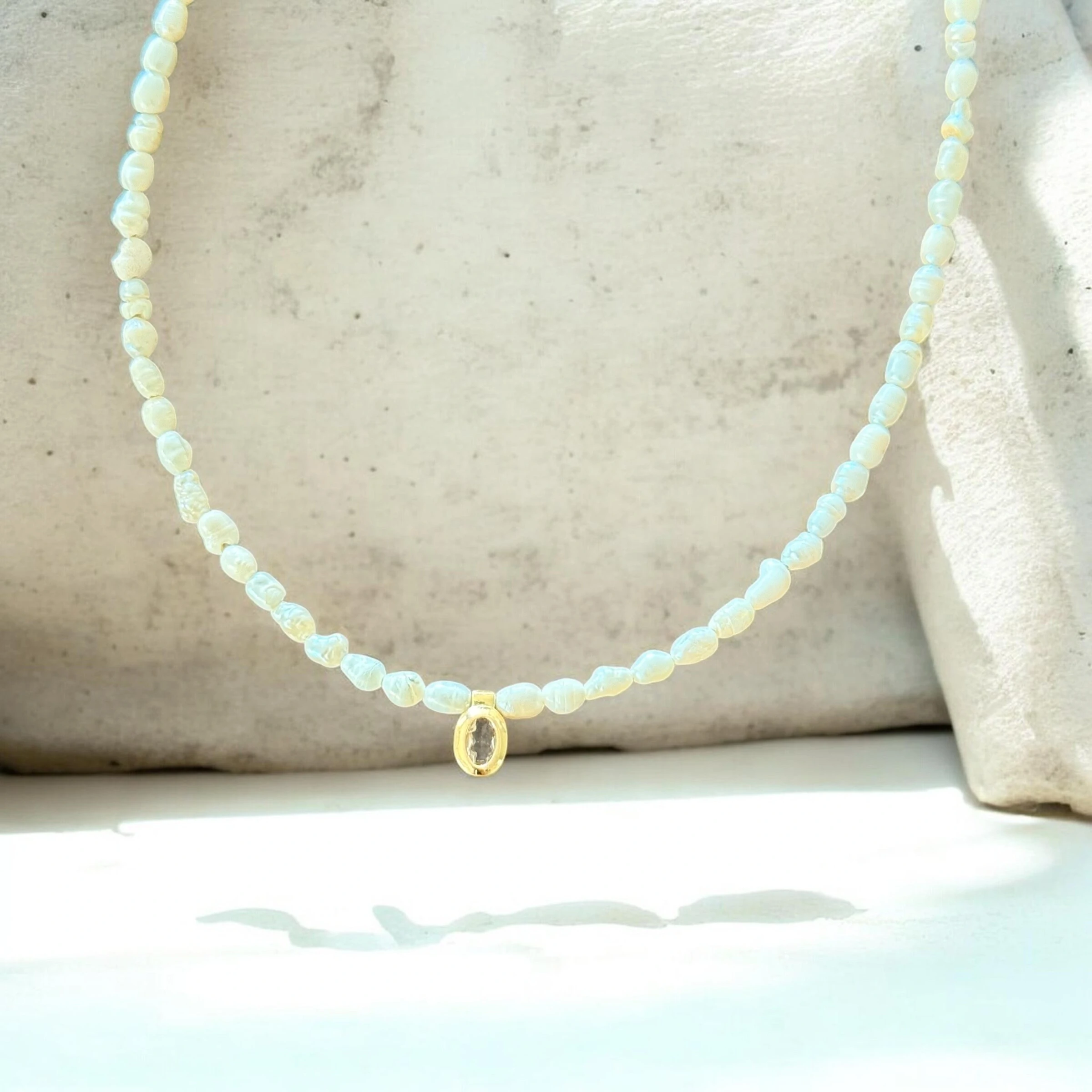 Colar Perolinhas Naturais com Pingente Zircônia