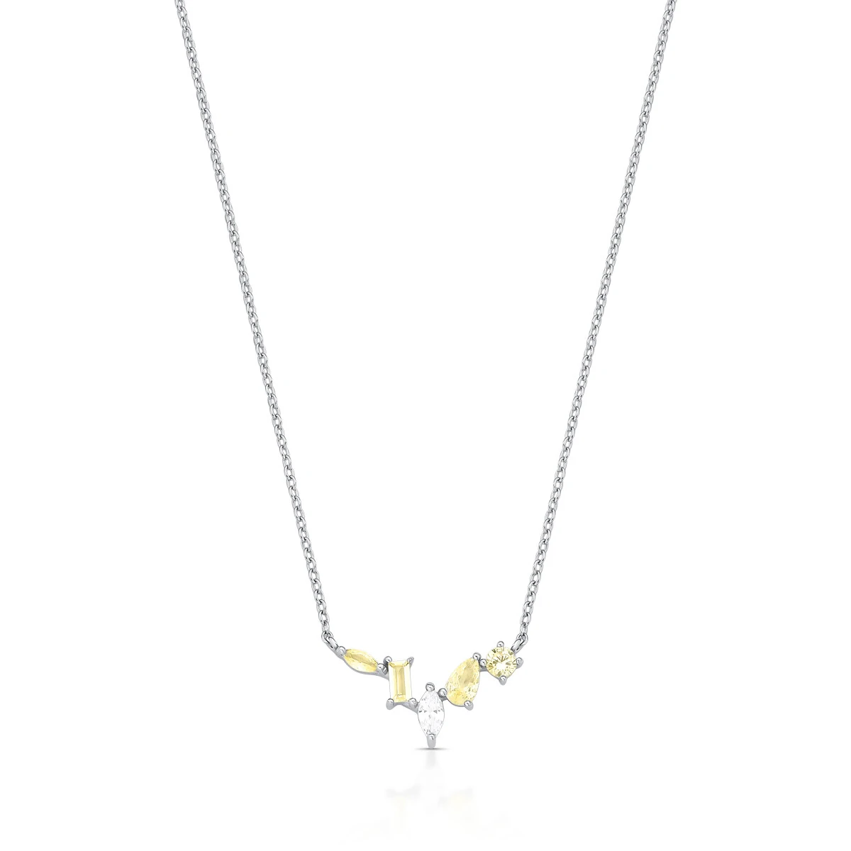 Colar Pingente com 4 Citrinos de Diferentes Formatos e 1 Gota Zircônia em Prata 925