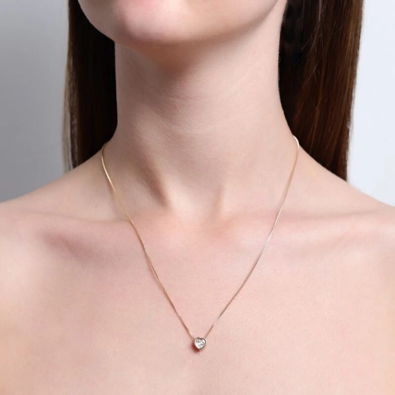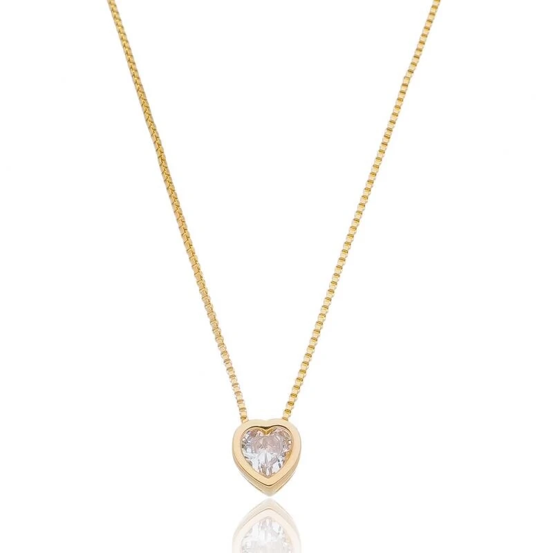 Colar Ponto de Luz de Coração de Zircônia em Dourado