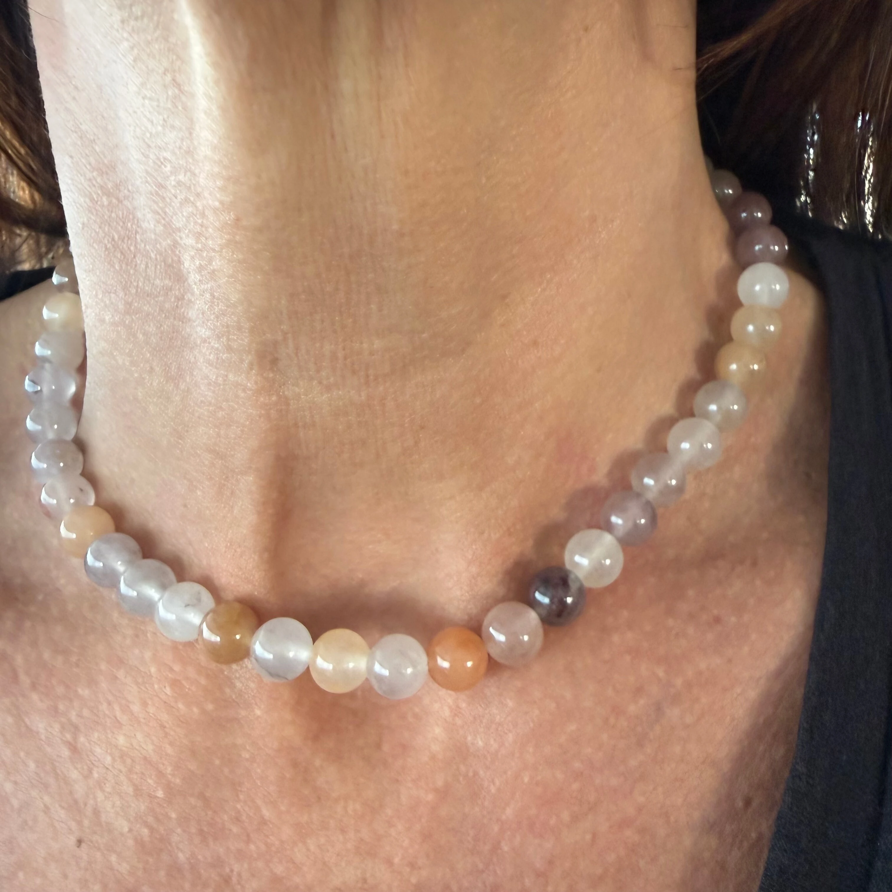 Delicado, luminoso e naturalmente sofisticado — este colar em quartzo traduz elegância em sua forma mais pura.