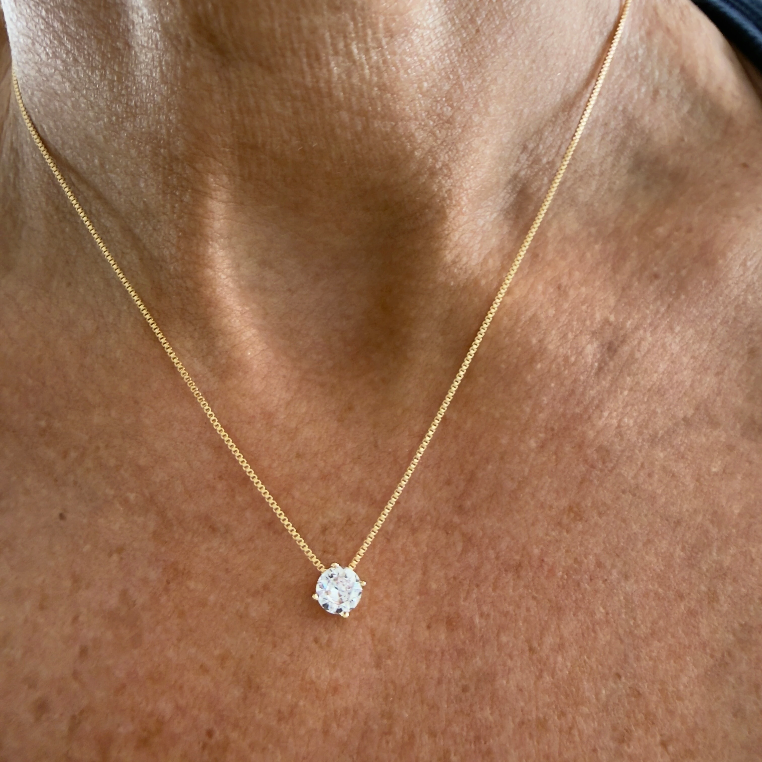 Colar Solitário Zircônia Quadrada em Dourado