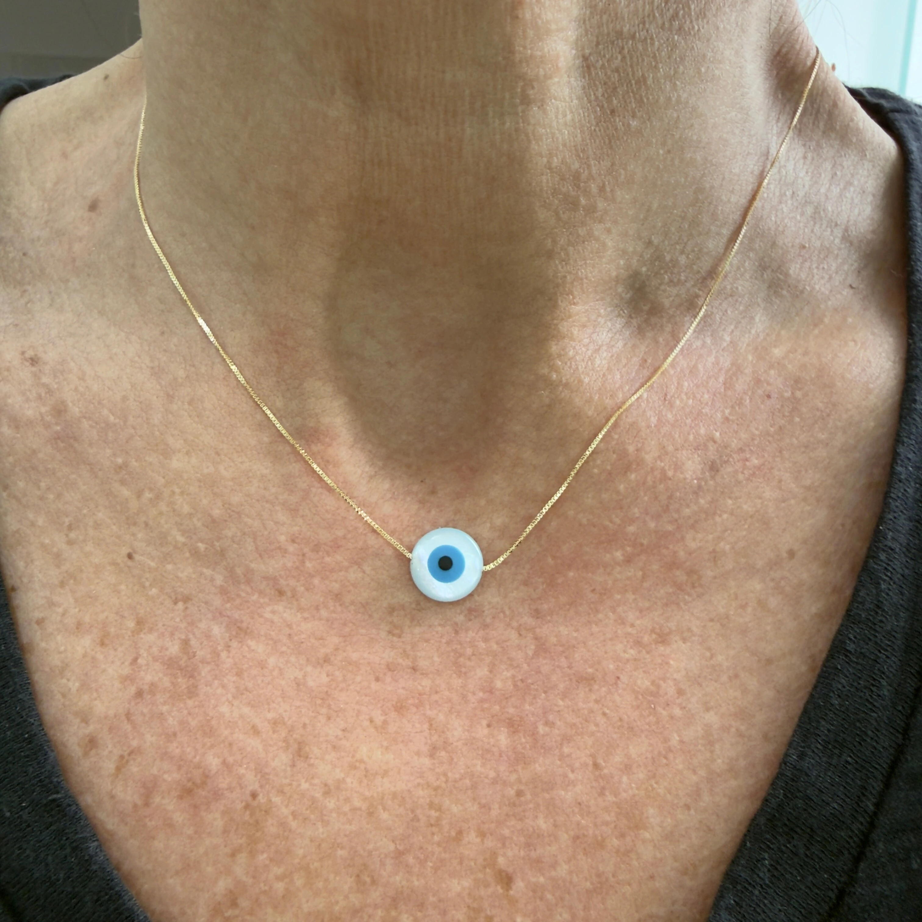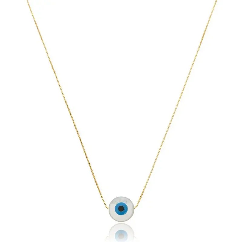 Colar Veneziana Fina com Olho Grego De Madrepérola em Dourado