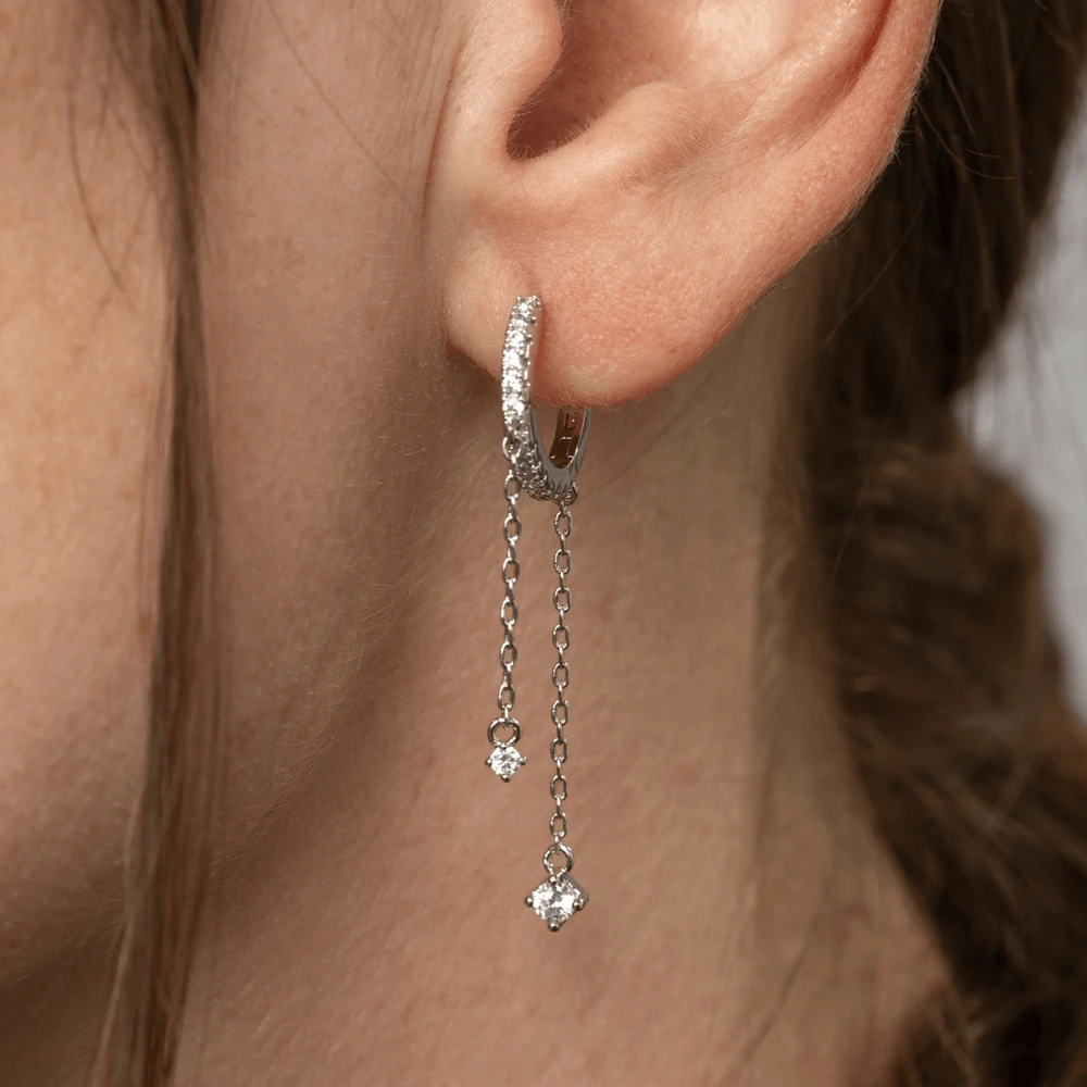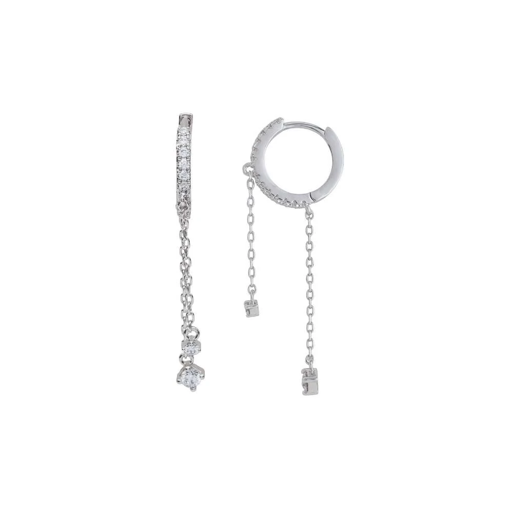 Brinco Redondo com 2 Fileiras Cravejadas de Zircônias e 1 Ponto de Luz em Prata 925