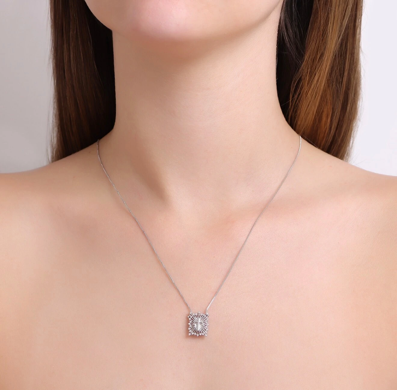 Escapulário Espírito Sto e Cruz em Ródio