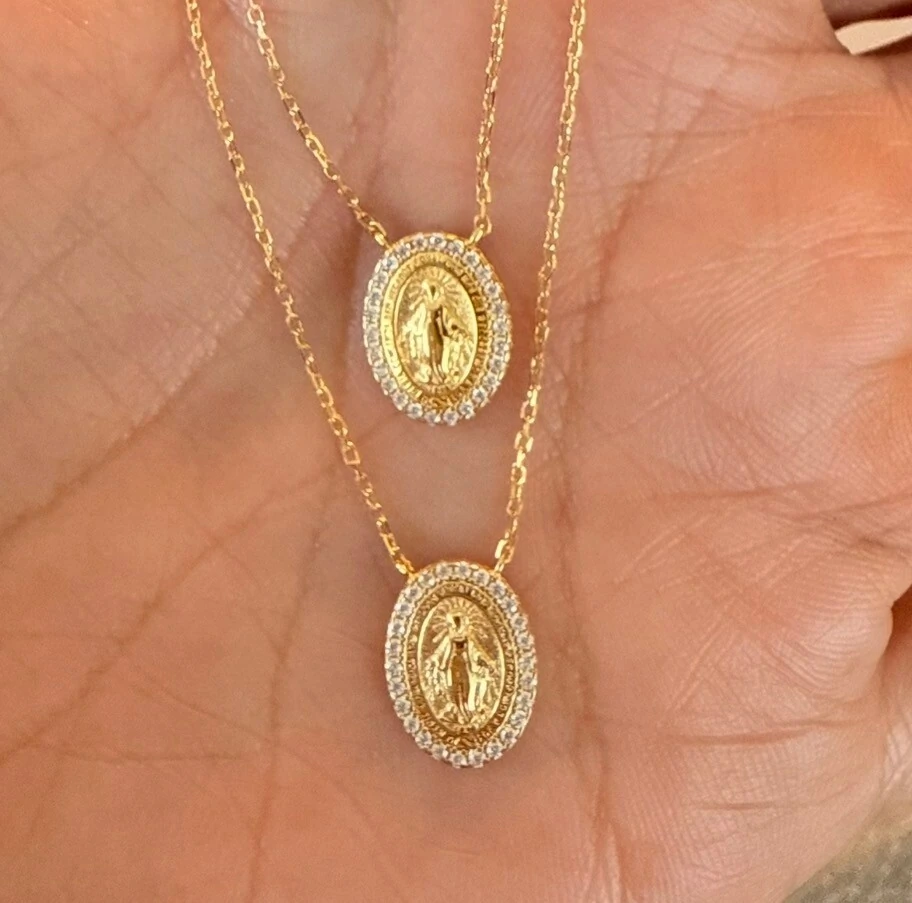 Escapulário N Sra das Graças com Zircônias Banho de Ouro em Prata 925