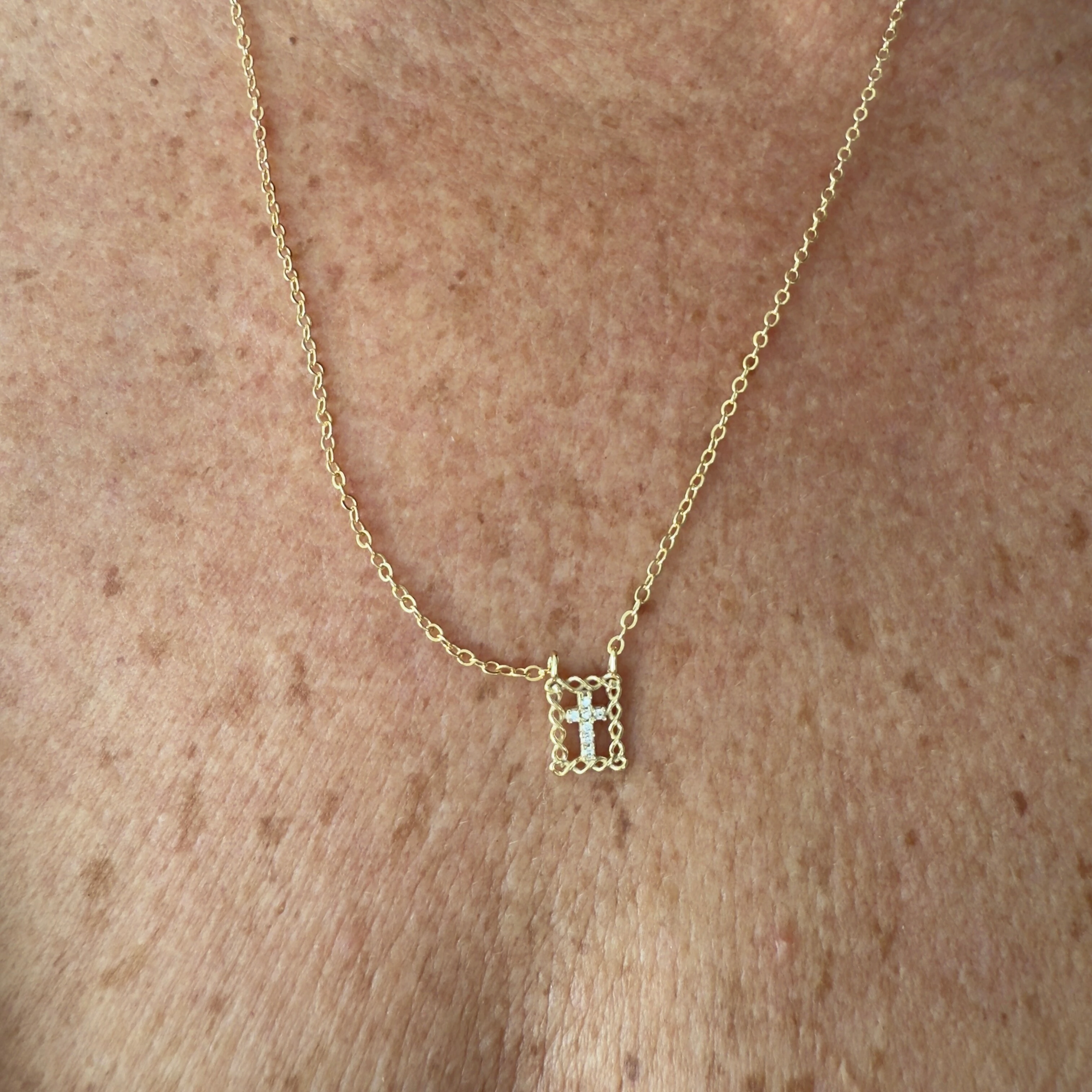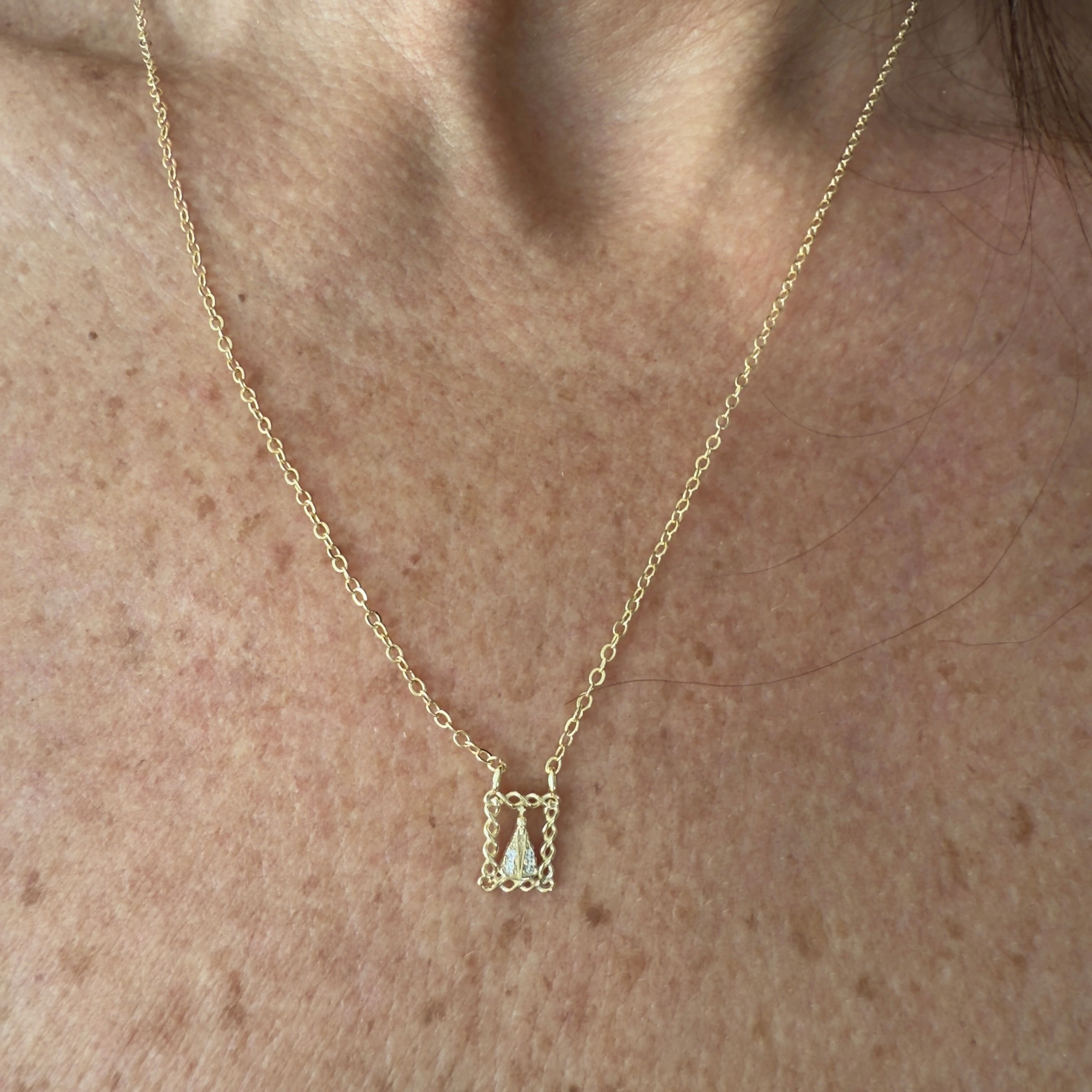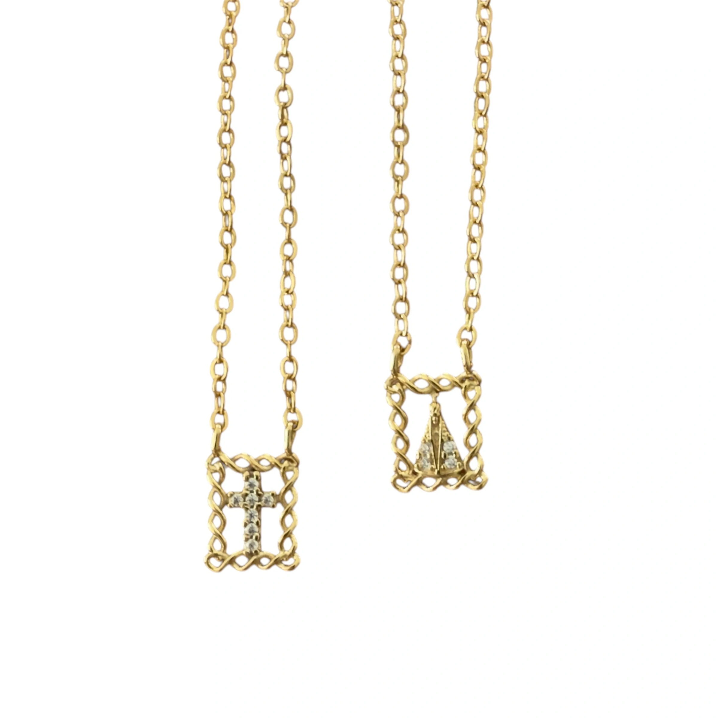Escapulário Nossa Senhora com Cruz Cravejada com Zircônias em Dourado