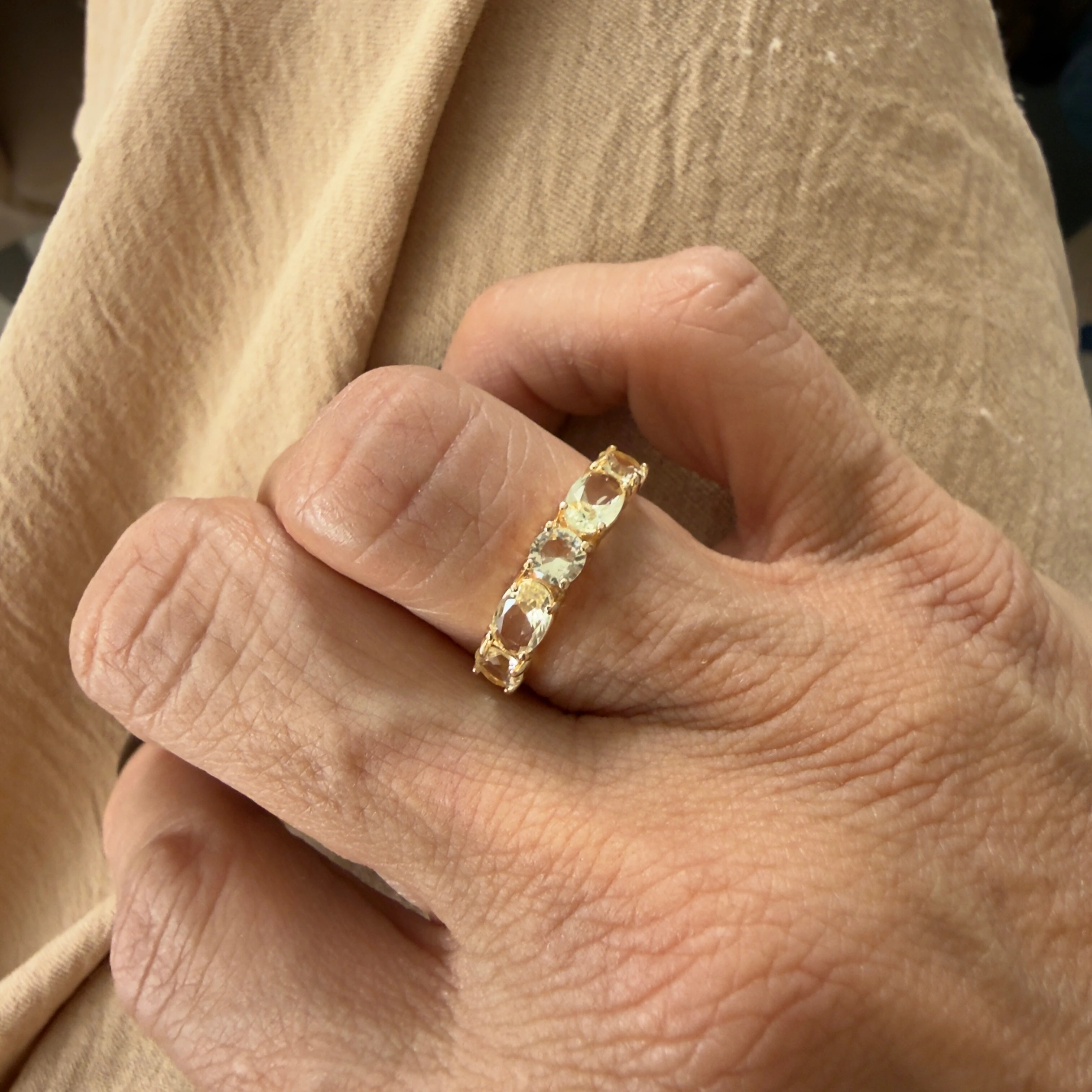 Meia Aliança Citrino Pedras Ovais e Redondas em Dourado