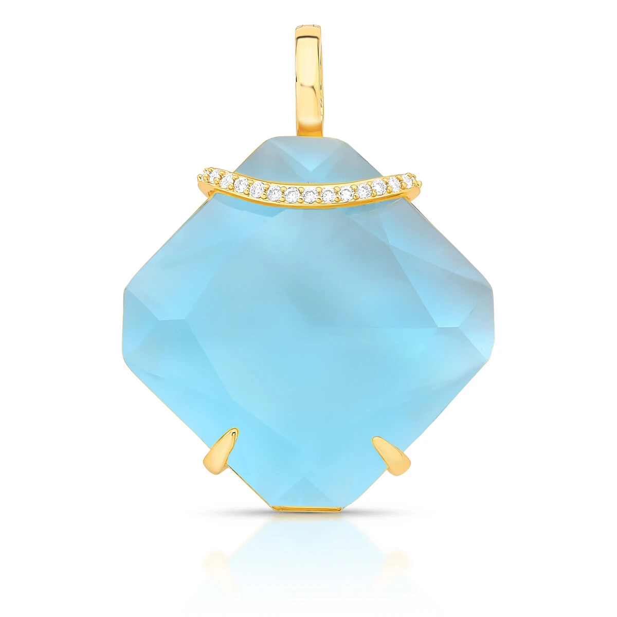 Pingente Quadrado Grande de Pedra com Zircônias em Dourado