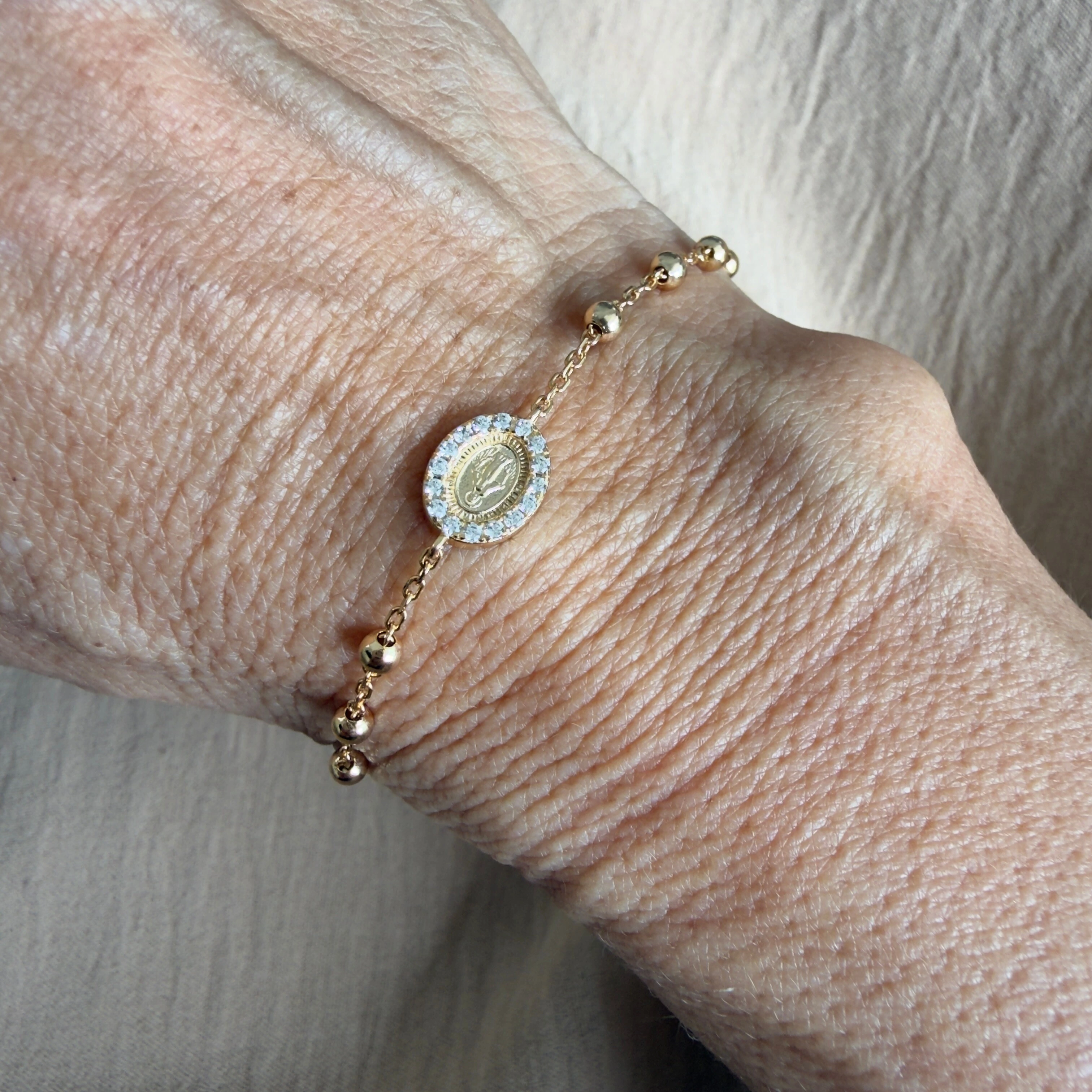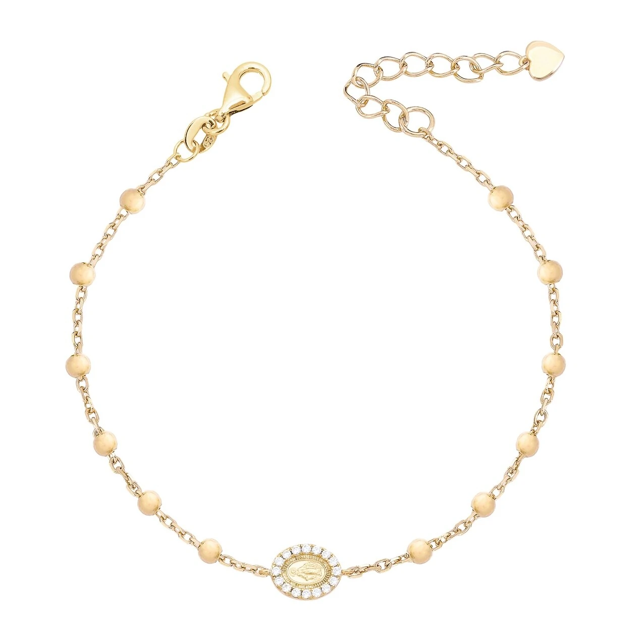 Pulseira Bolinhas com Nossa Sra Das Graças em Prata 925 + Banho de Ouro