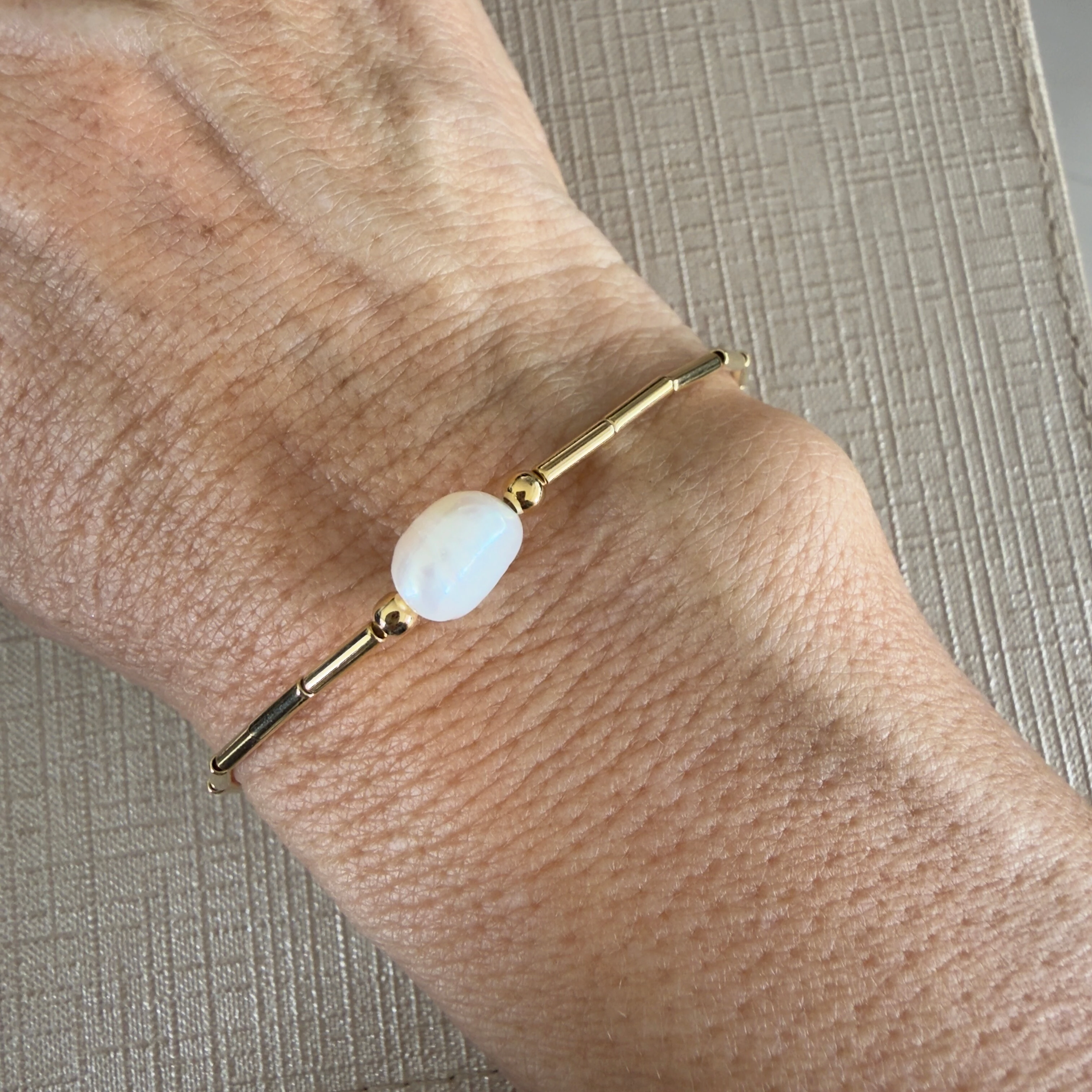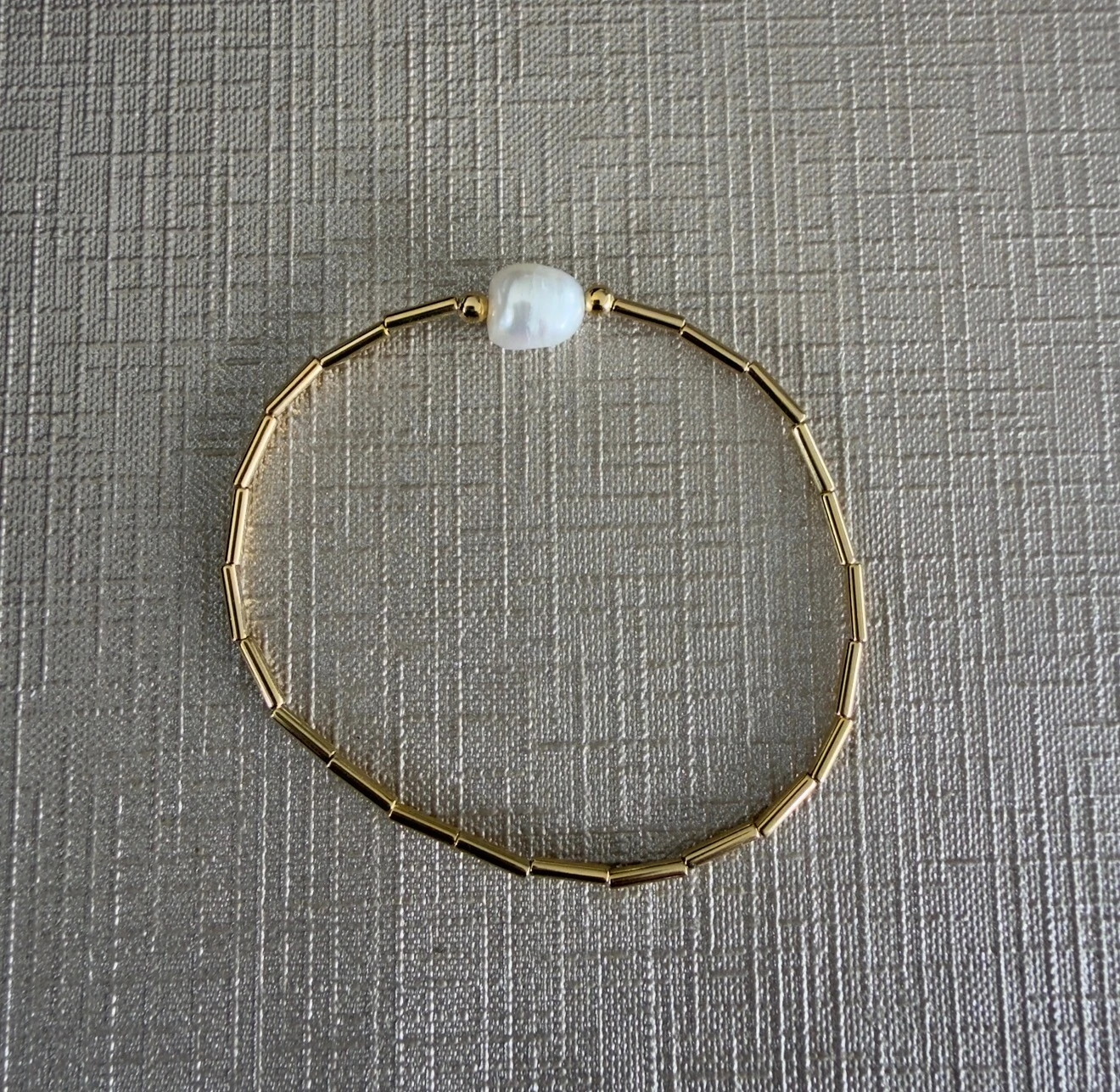 Pulseira Canutilhos Dourados e Pérola Água Doce