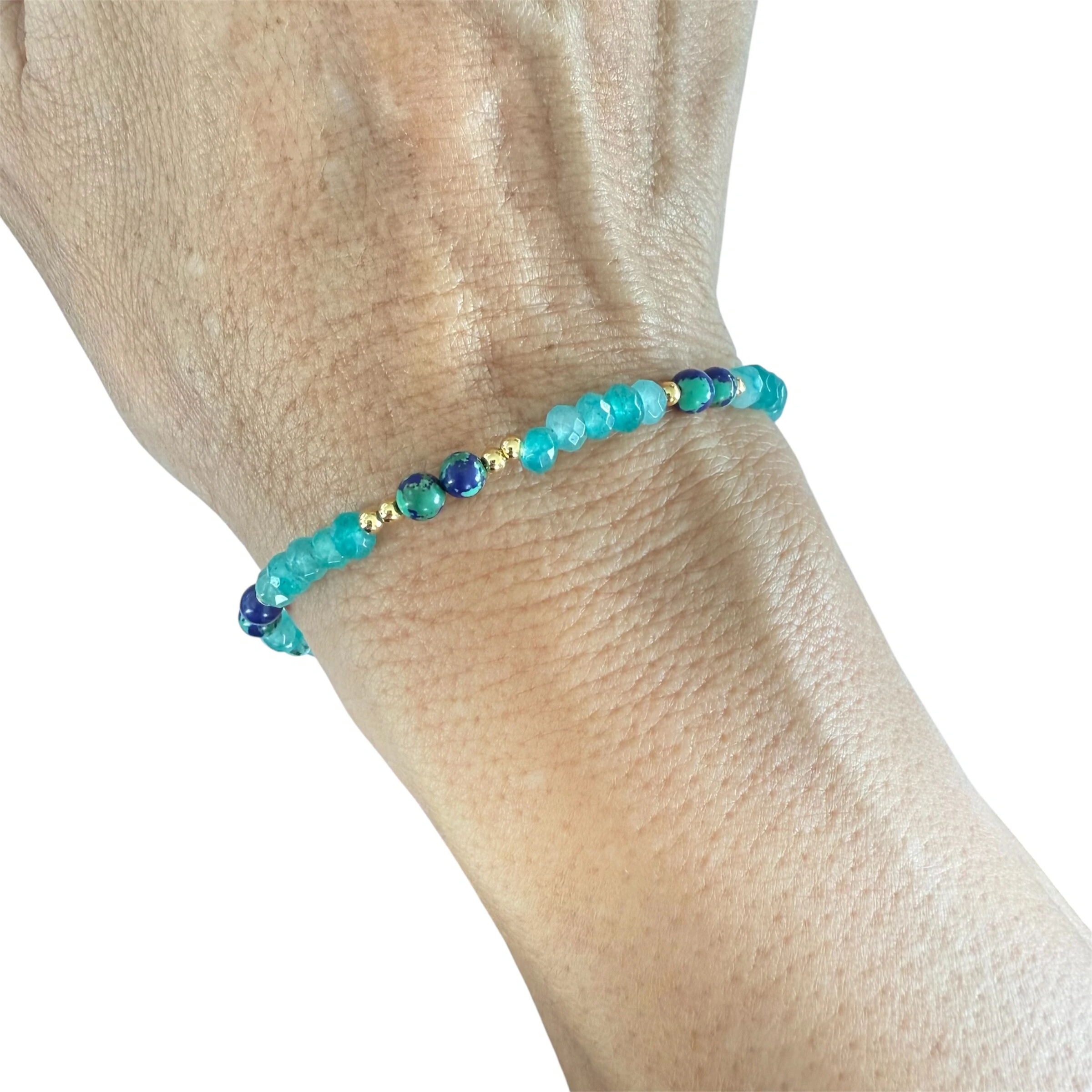 Pulseira 3 Flores Azul e Azul Topázio em Prata 925