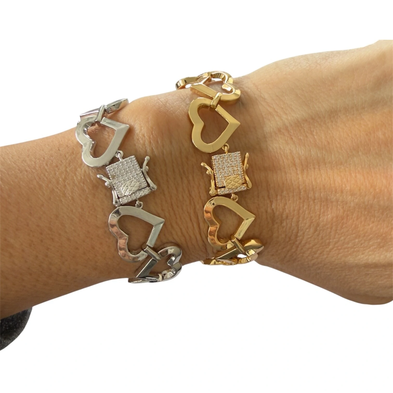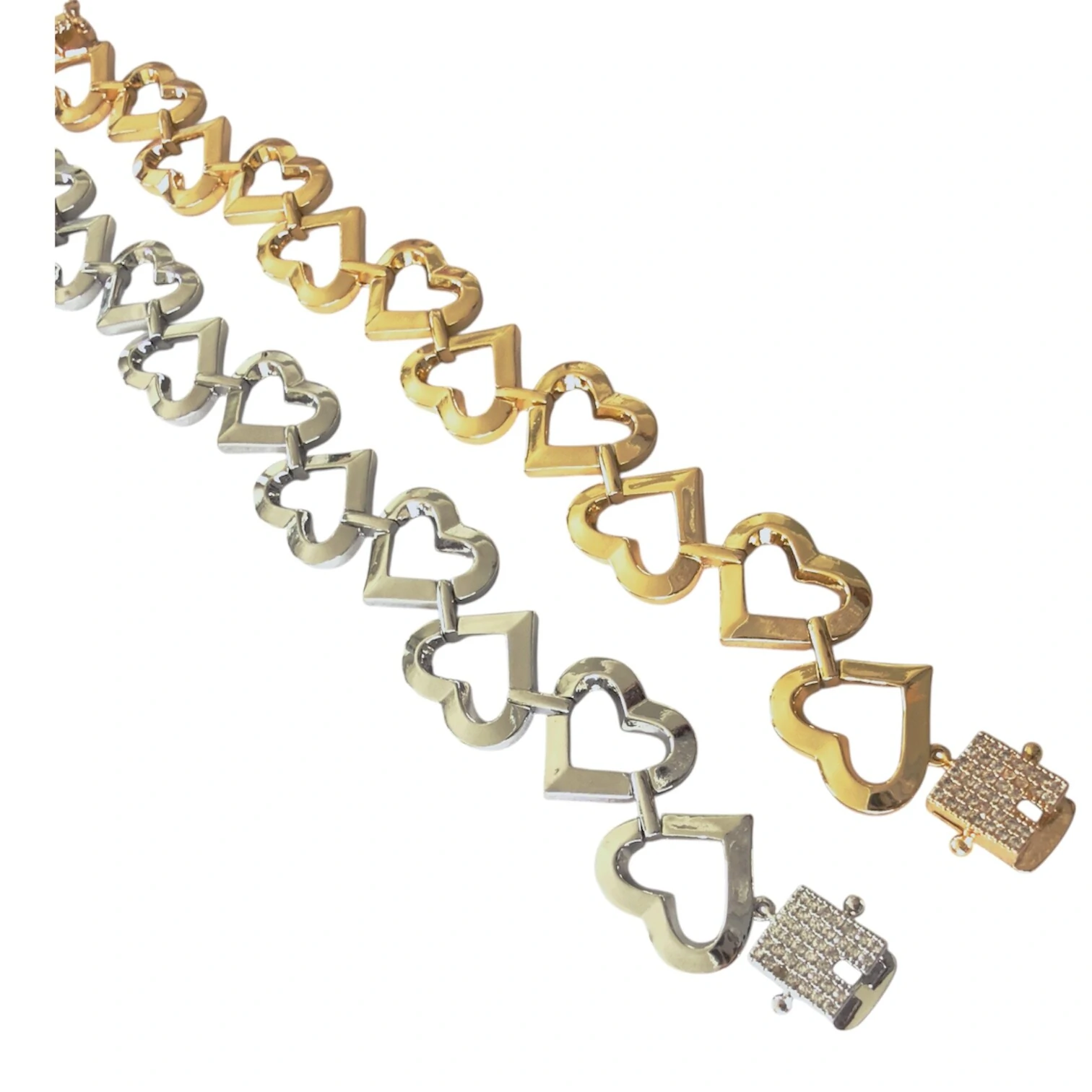 Pulseira Corações Vazados com Fecho Cravejado com Zircônias