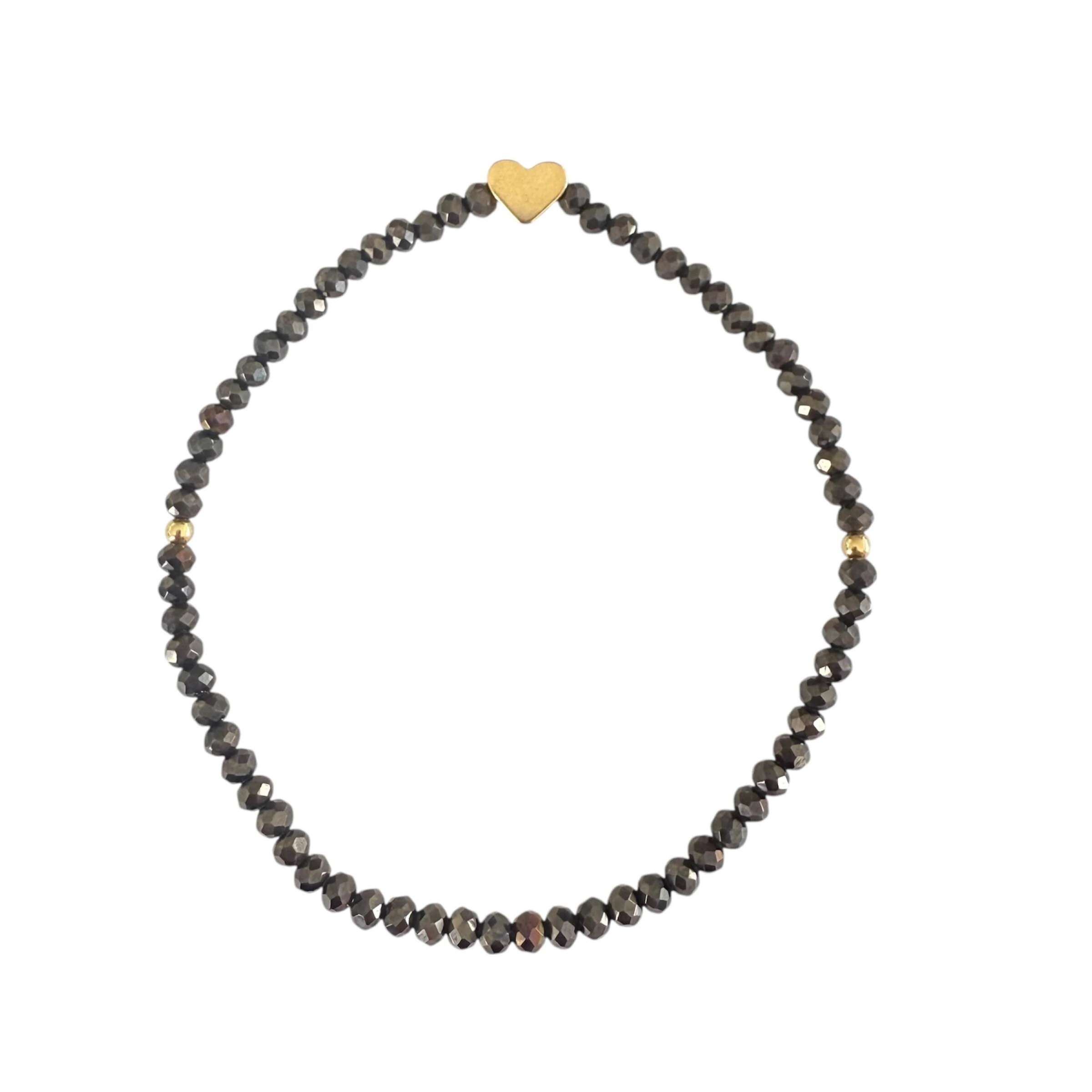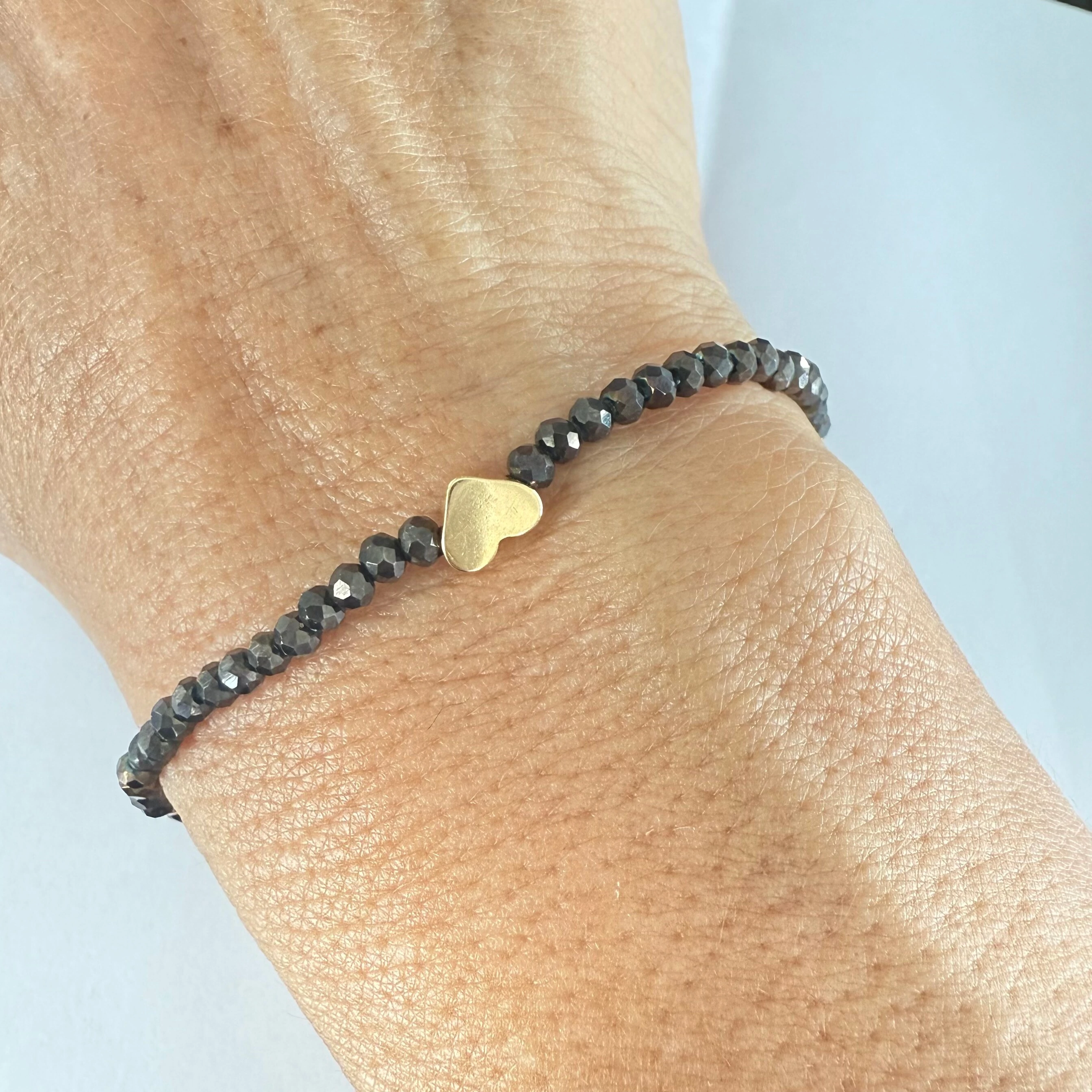 Pulseira Cristal no Silicone com Coração de Hematita em Dourado