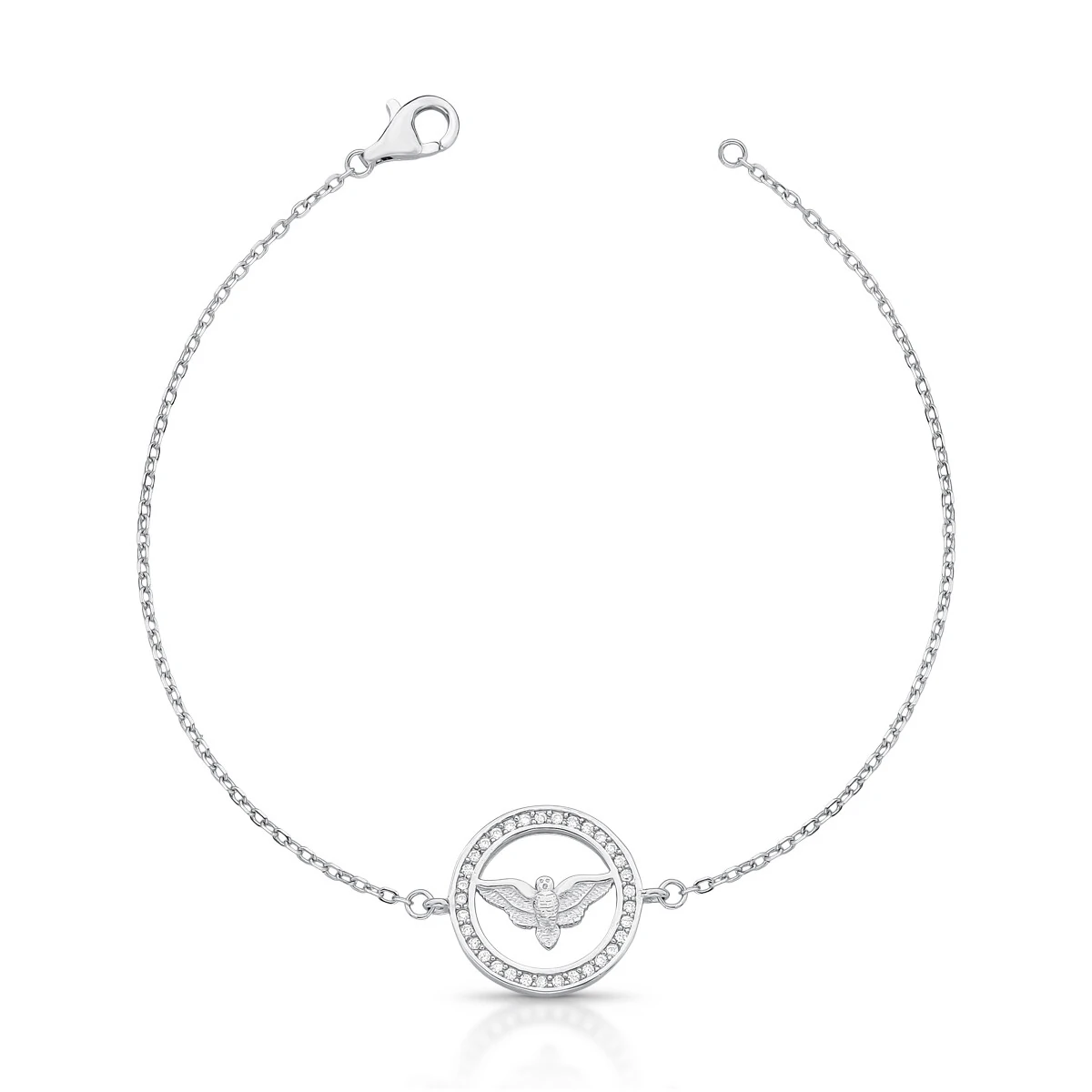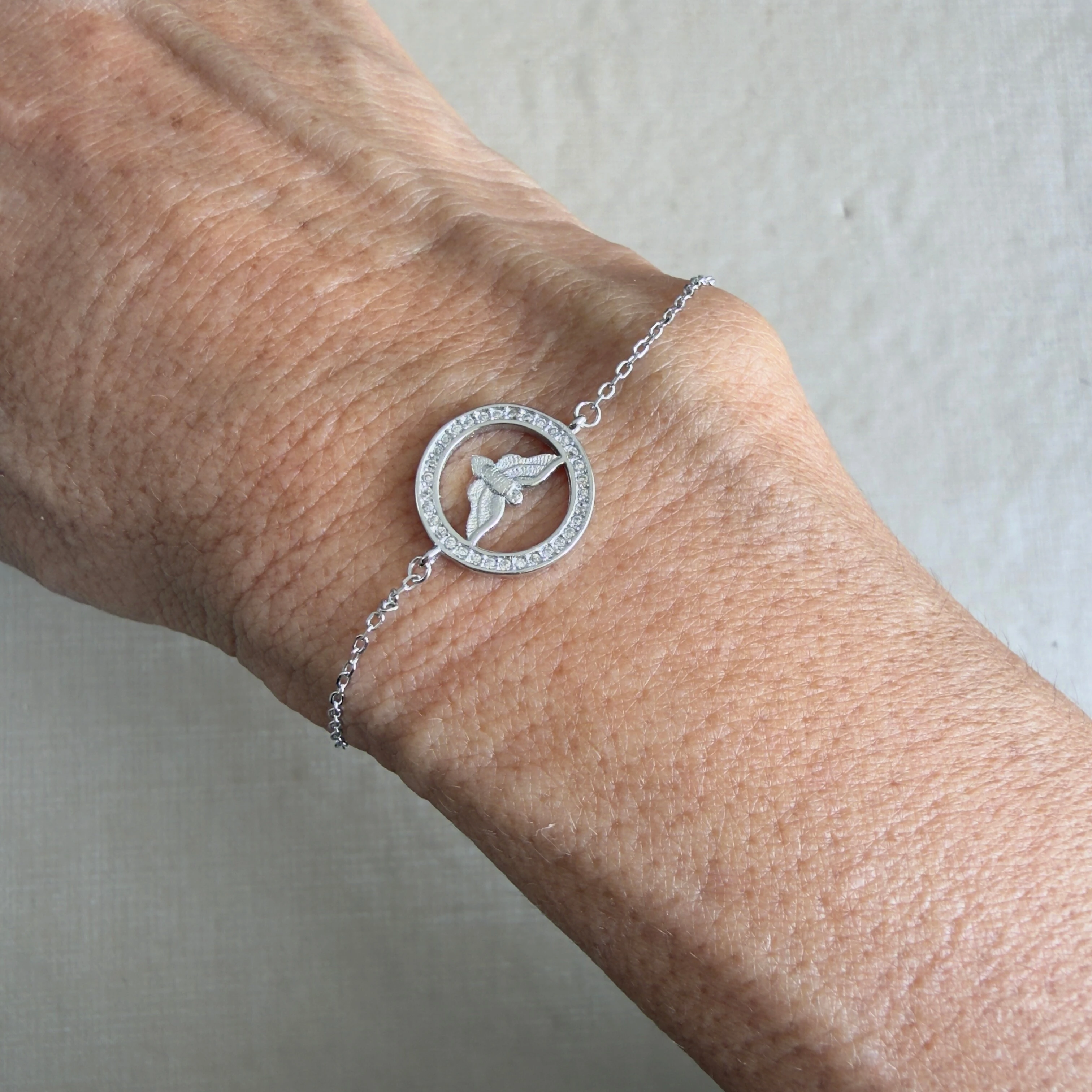 Pulseira Fina com Pingente Redondo Espírito Santo em Prata 925