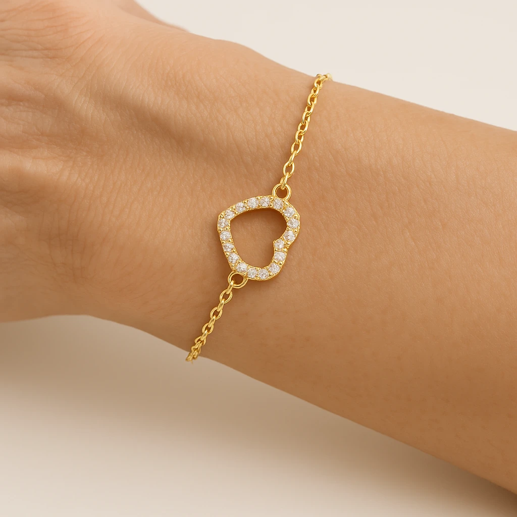 Pulseira Fininha com Coração Cravejado com Zircônias em Dourado