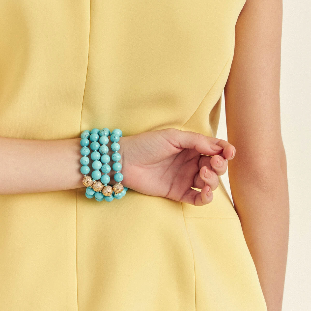 Pulseira Howlita Turquesa com Fecho Cravejado com Zircônias em Dourado