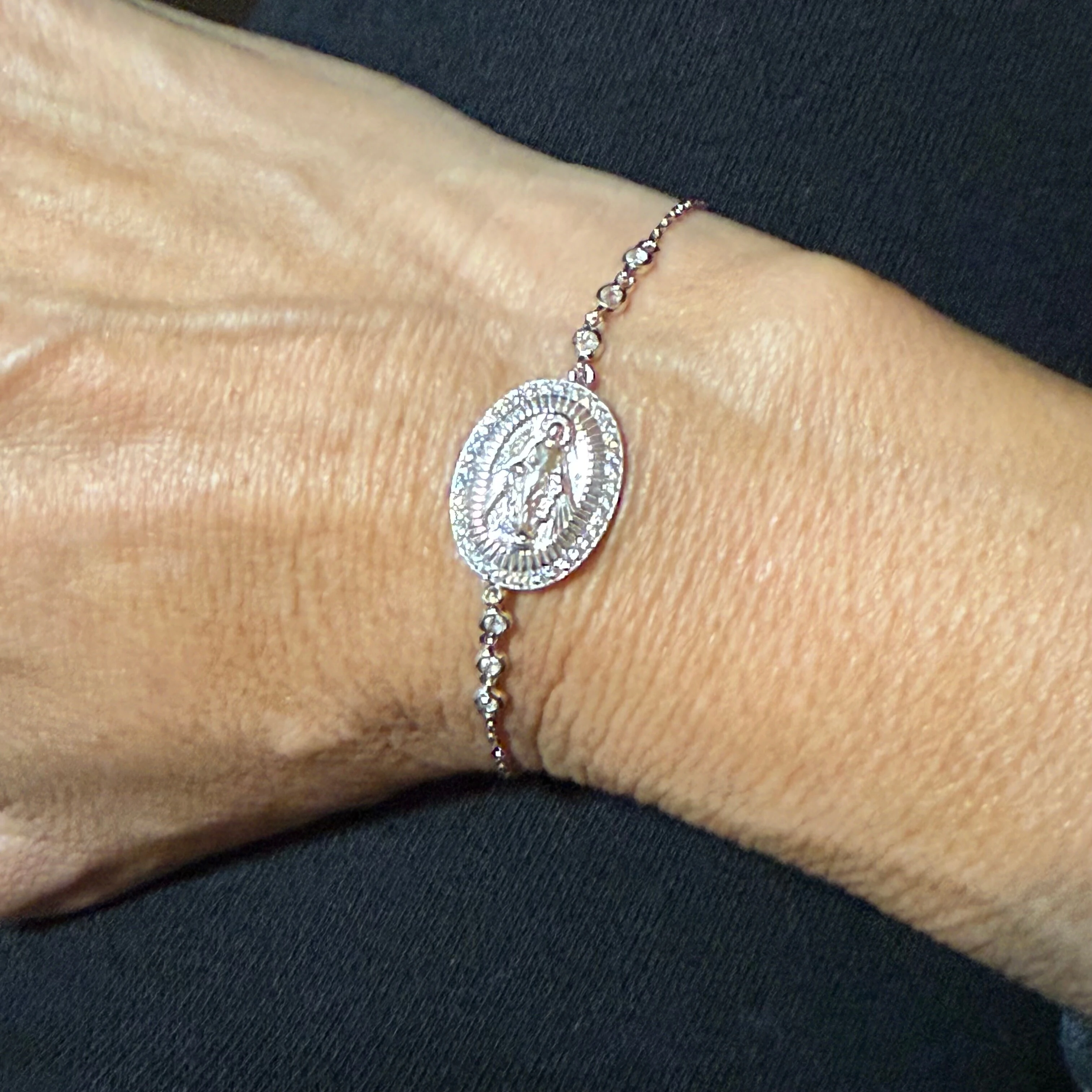 Pulseira Espírito Santo Vazado Cravejado em Zircônias em Prata 925