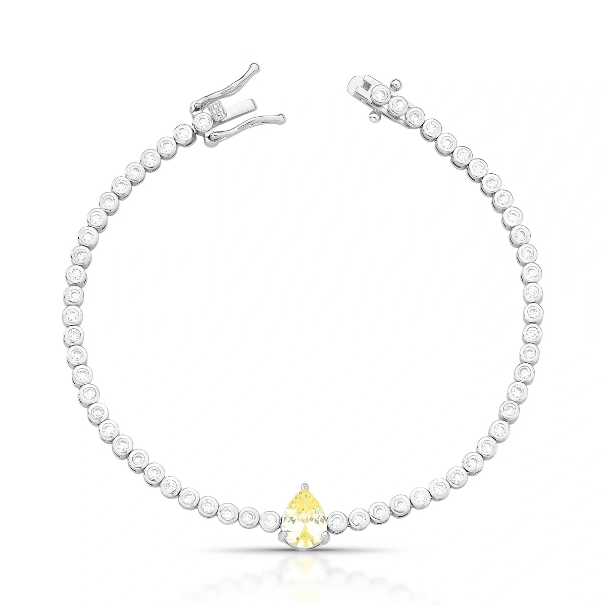 Pulseira Riviera Caixa Inglesa com Gota de Citrino em Ródio
