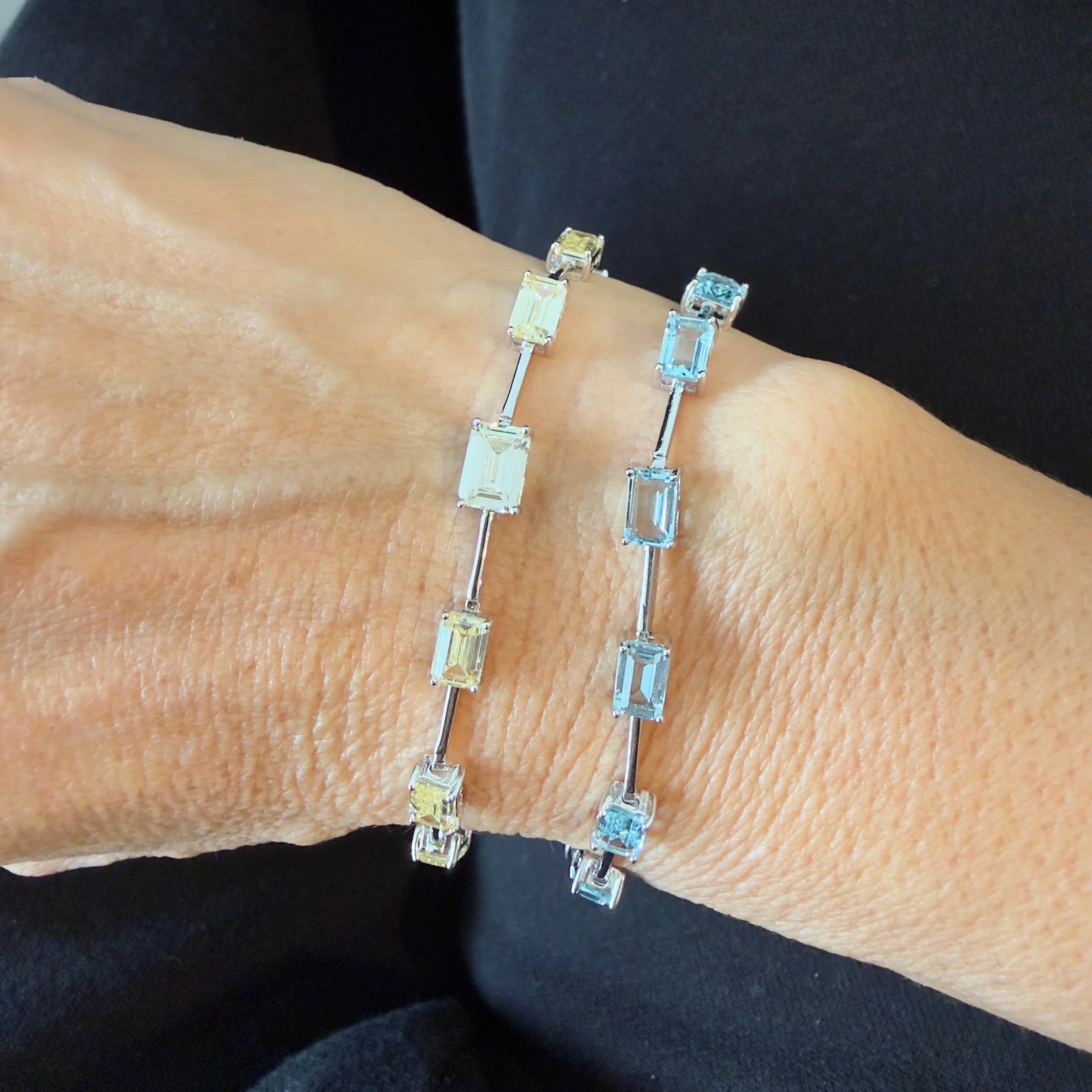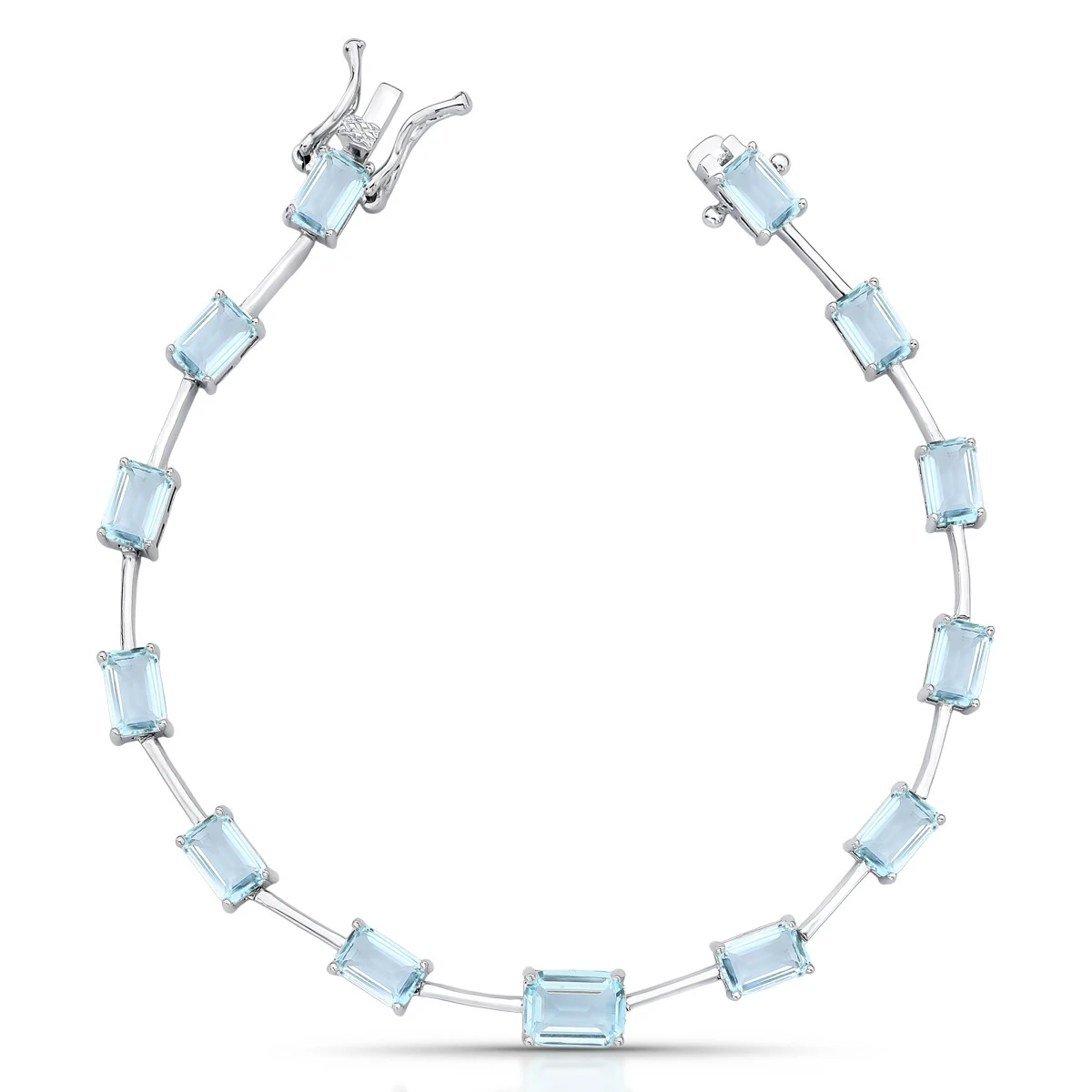 Pulseira Fininha com Retângulo Água Marinha Fusion em Ródio