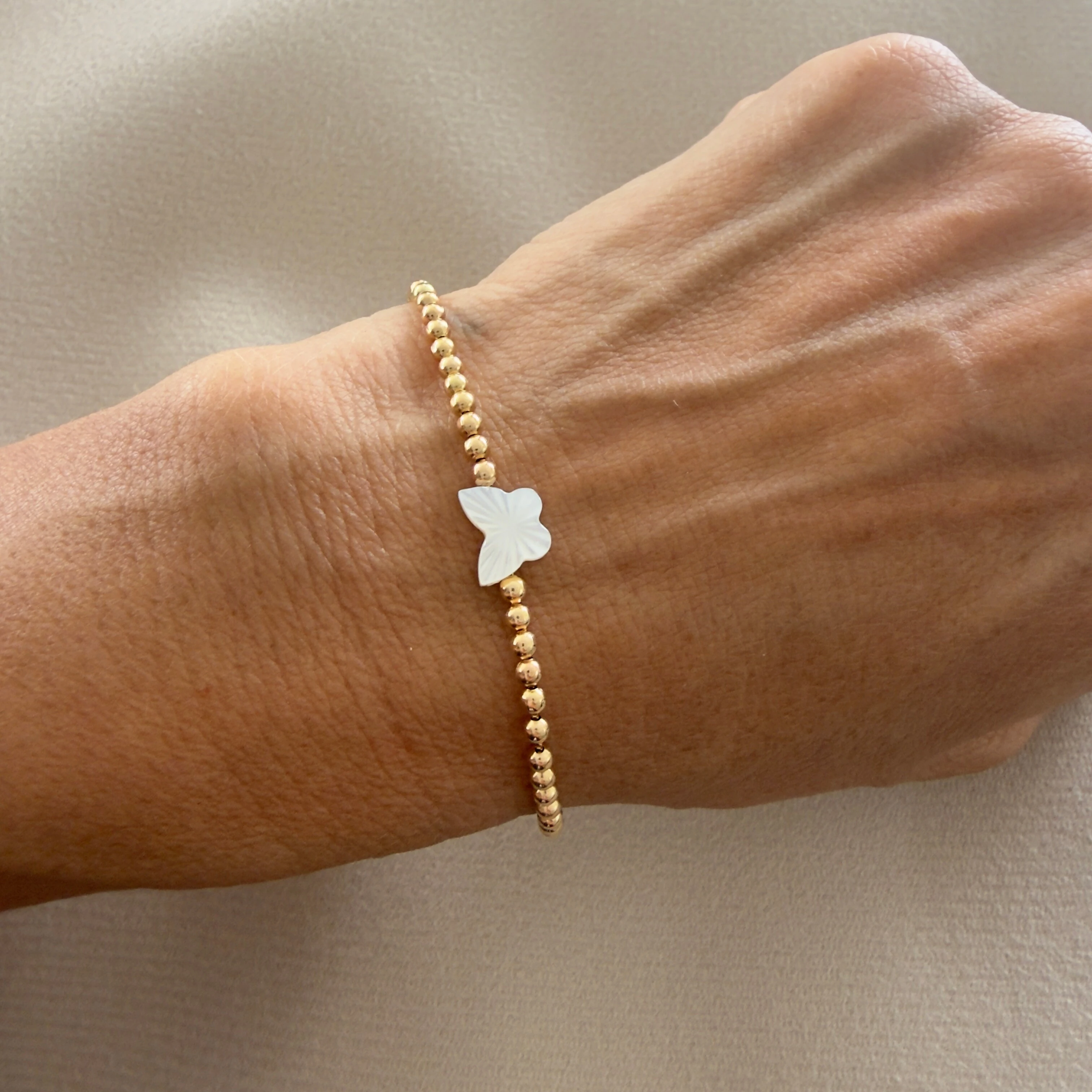 Pulseira Shamballa Bolinhas com Borboleta Madrepetola em Dourado