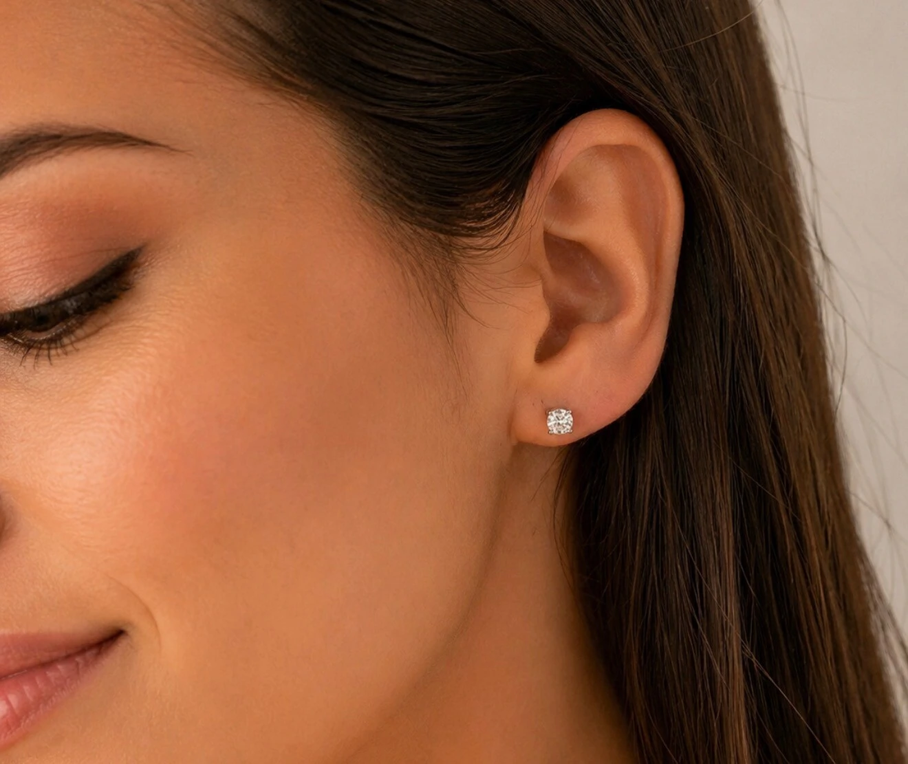 Brinco solitário com caixa quadrada e zircônia de 0,5 milímetro, uma peça clássica, delicada e indispensável para quem ama elegância atemporal.